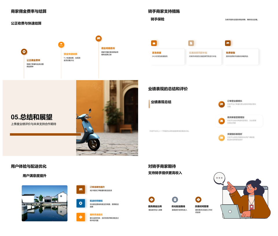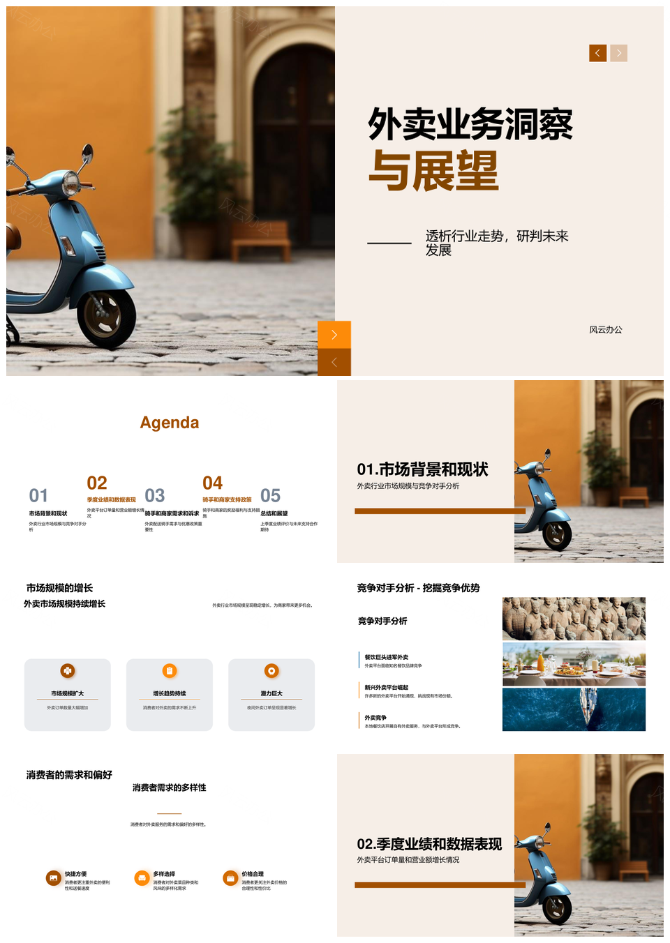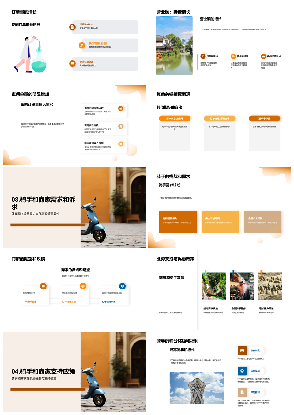 这是一张外卖总监季度业绩骑手商家电动车市场展望PPT模板,包含外卖总监、季度业绩、骑手、商家、电动车、市场展望等主题内容,也可用作外卖总监季度业绩骑手商家电动车市场展望、外卖总监季度业绩骑手商家、季度业绩骑手商家电动车市场展望、外卖总监季度业绩骑手、季度业绩骑手商家电动车、骑手商家电动车市场展望、外卖总监骑手商家电动车、季度业绩电动车市场展望、外卖骑手商家电动车市场、总监季度业绩骑手商家、季度业绩骑手商家、商家电动车市场展望、外卖总监电动车市场、季度业绩电动车市场、骑手商家电动车市场等PPT场景使用。 风云办公提供的外卖总监季度业绩骑手商家电动车市场展望PPT模板,下载格式为pptx,一共24页,作品中文字及图均可以修改和编辑,图片更改请在作品中右键图片并更换,文字修改请直接点击文字进行修改。
