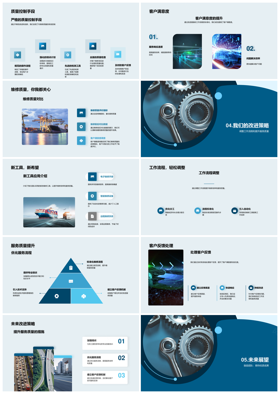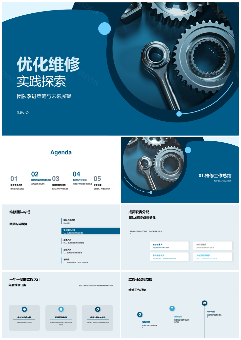 风云办公提供的维修团队优化策略提升质量效率PPT模板,下载格式为pptx,一共33页,作品中文字及图均可以修改和编辑,图片更改请在作品中右键图片并更换,文字修改请直接点击文字进行修改。