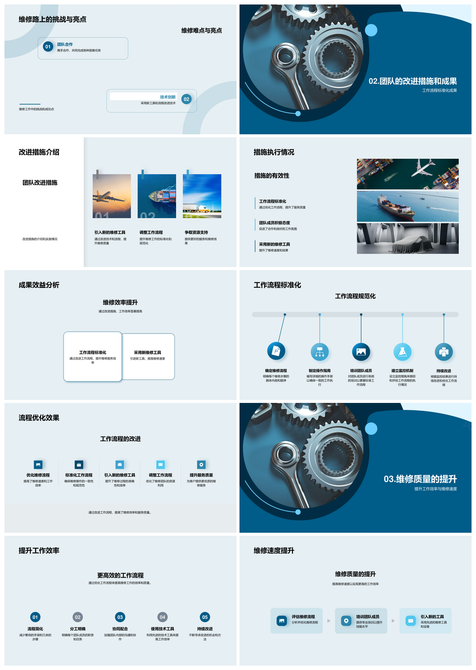 这是一张维修团队优化策略提升质量效率PPT模板,包含维修团队、优化策略、提升、质量效率等主题内容,也可用作维修团队优化策略、团队优化策略提升、优化策略提升质量、策略提升质量效率、维修团队优化、团队优化策略、优化策略提升、策略提升质量、提升质量效率、维修团队、团队优化、优化策略、策略提升、提升质量、质量效率等PPT场景使用。