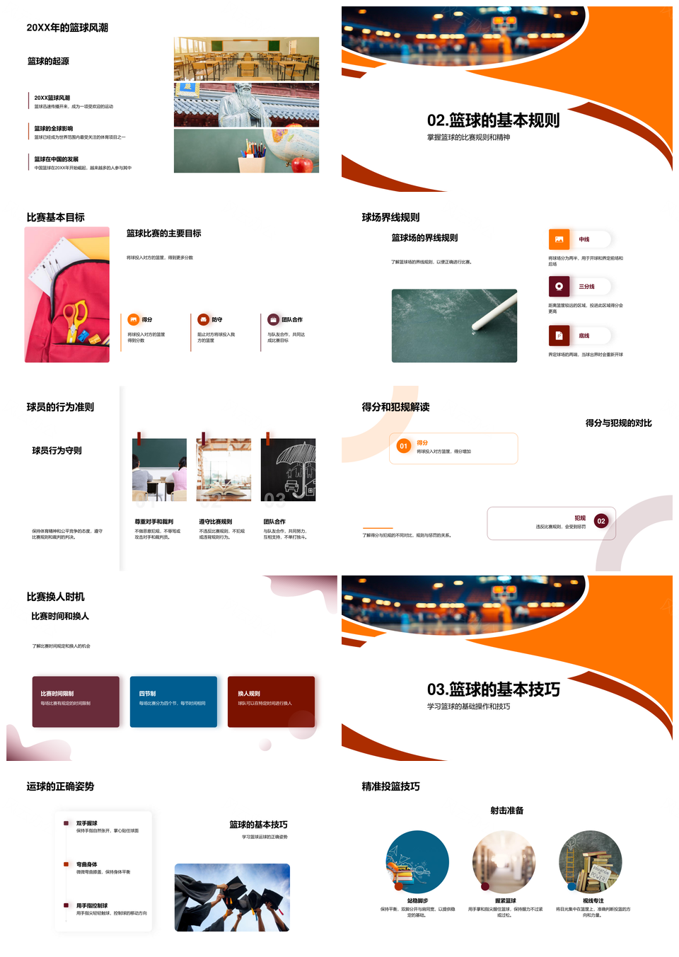 风云办公提供的小球员学篮球起源规则练合作技巧PPT模板,下载格式为pptx,一共33页,作品中文字及图均可以修改和编辑,图片更改请在作品中右键图片并更换,文字修改请直接点击文字进行修改。