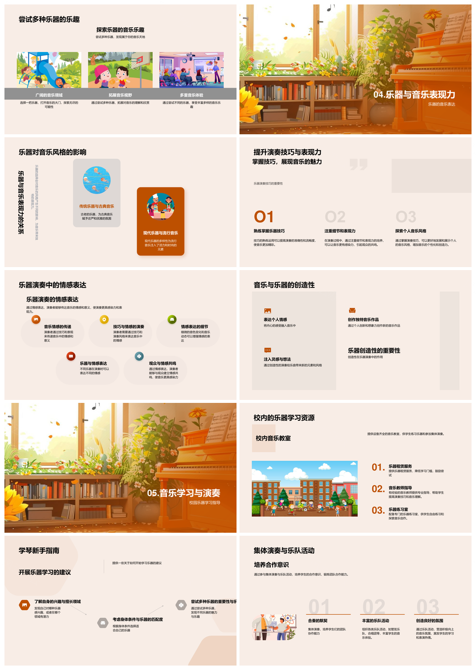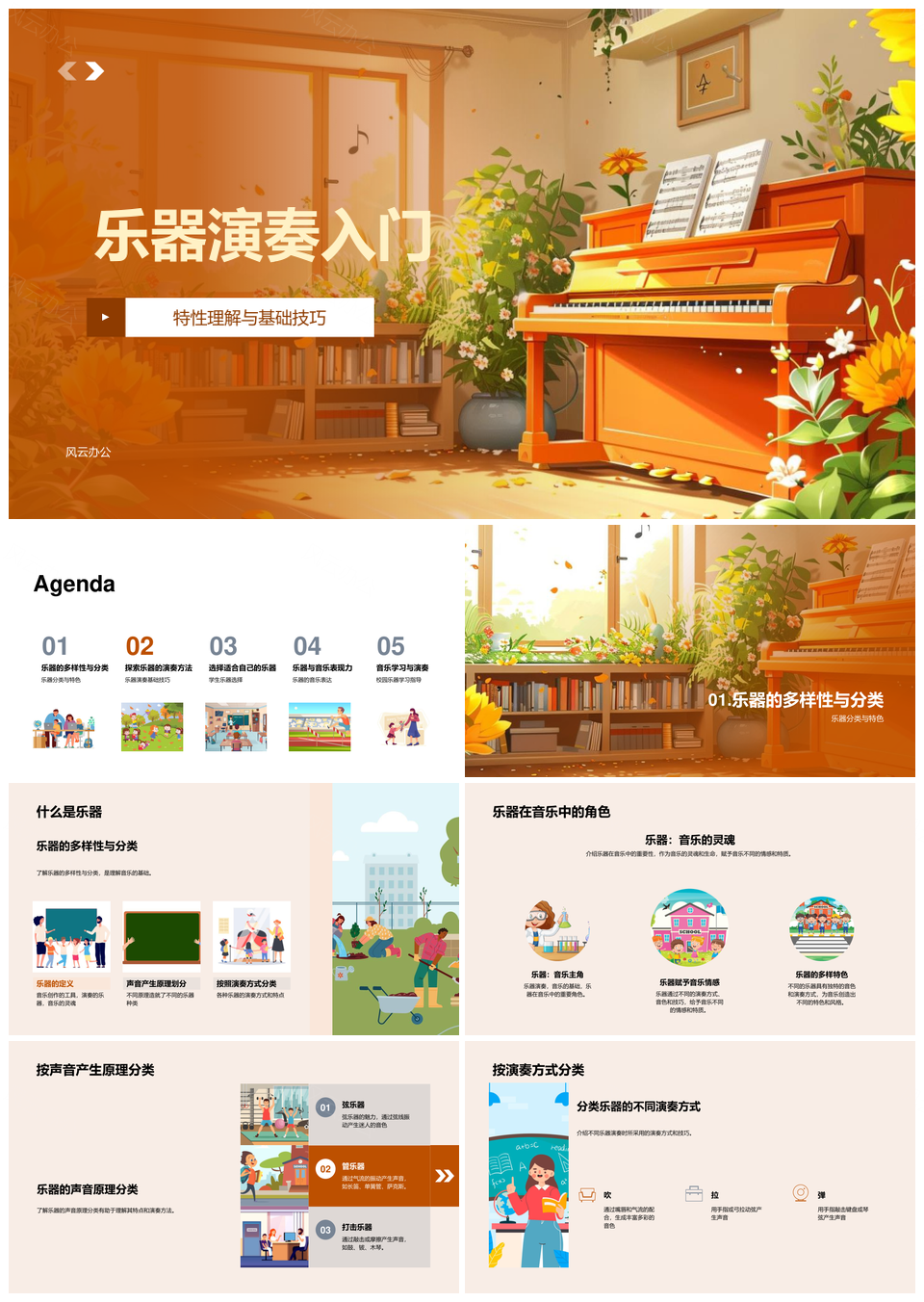 2025乐器选类演奏基础技巧风格情感表现PPT模板推荐