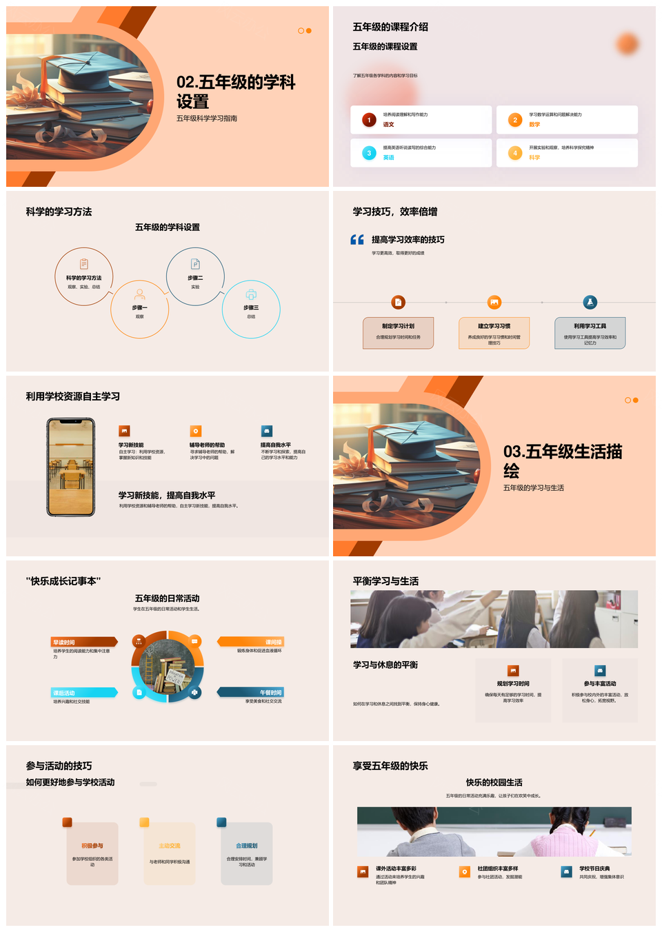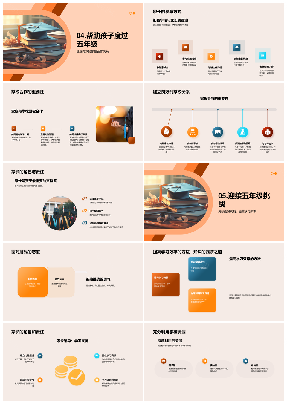 五年级学科挑战高效学习家校共育启新程PPT模板推荐