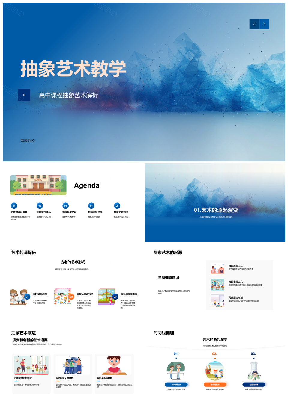 高中抽象艺术教学起源演变名家背景解析PPT模板推荐