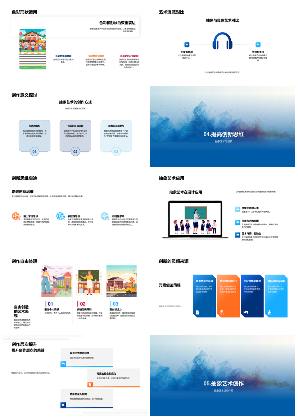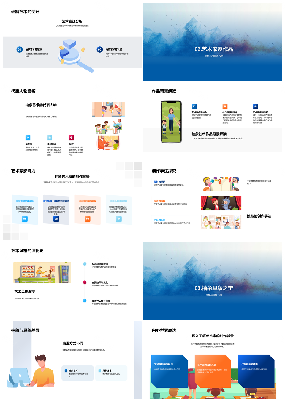 这是一张高中抽象艺术教学起源演变名家背景解析PPT模板,包含高中、抽象艺术、教学、起源、演变、名家、背景、解析等主题内容,也可用作高中抽象艺术教学起源演变、高中抽象艺术教学起源解析、高中抽象艺术教学演变背景、抽象艺术教学起源演变名家、高中教学起源演变名家背景、抽象艺术起源演变名家解析、高中抽象艺术演变名家背景、抽象艺术教学起源背景解析、高中教学演变名家背景解析、高中抽象艺术名家背景解析、教学起源演变名家背景、抽象艺术起源背景解析、高中教学名家背景解析、起源演变名家背景、演变名家背景解析等PPT场景使用。 风云办公提供的高中抽象艺术教学起源演变名家背景解析PPT模板,下载格式为pptx,一共33页,作品中文字及图均可以修改和编辑,图片更改请在作品中右键图片并更换,文字修改请直接点击文字进行修改。