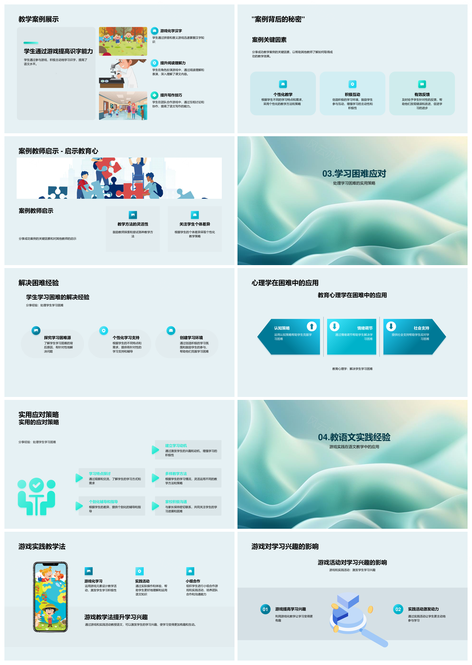 2025教育心理学游戏教学法实践案例与学习困难应对策略PPT模板推荐