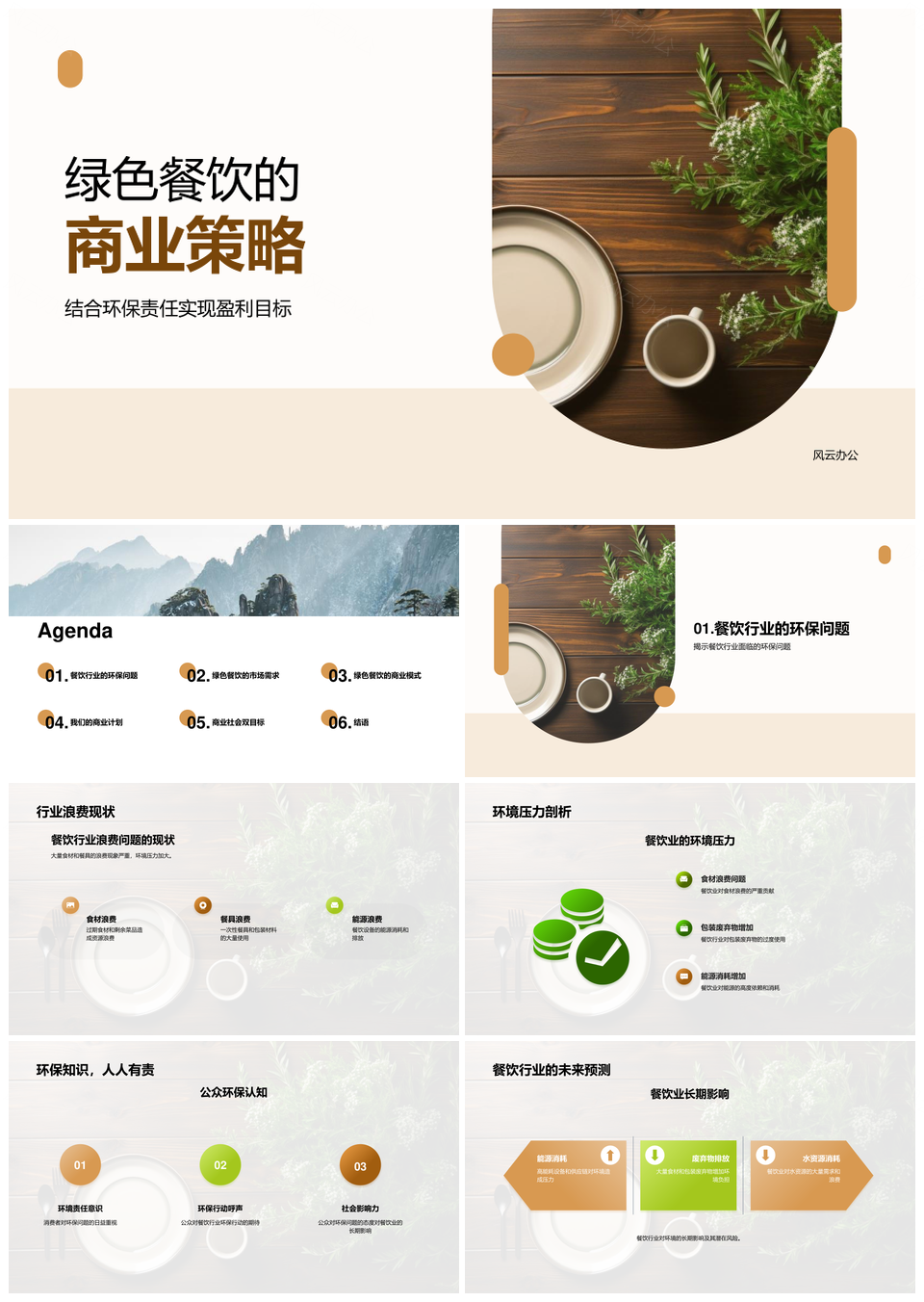 风云办公提供的绿色餐饮商业模式环保责任盈利策略PPT模板,下载格式为pptx,一共32页,作品中文字及图均可以修改和编辑,图片更改请在作品中右键图片并更换,文字修改请直接点击文字进行修改。