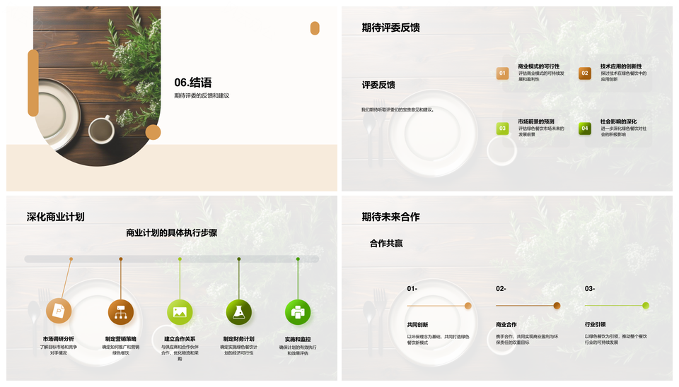 这是一张绿色餐饮商业模式环保责任盈利策略PPT模板,包含绿色餐饮、商业模式、环保责任、盈利策略等主题内容,也可用作绿色餐饮商业模式、绿色餐饮环保责任盈利、商业模式环保责任盈利策略、环保责任盈利策略、绿色餐饮商业、绿色环保责任策略、商业盈利策略、绿色环保责任盈利、餐饮环保责任盈利、绿色餐饮责任策略、绿色商业盈利策略、绿色餐饮、商业模式、环保责任、盈利策略等PPT场景使用。