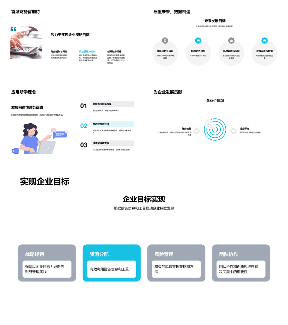 风云办公提供的首席财务官战略风控责任擎领持续发展PPT模板,下载格式为pptx,一共33页,作品中文字及图均可以修改和编辑,图片更改请在作品中右键图片并更换,文字修改请直接点击文字进行修改。