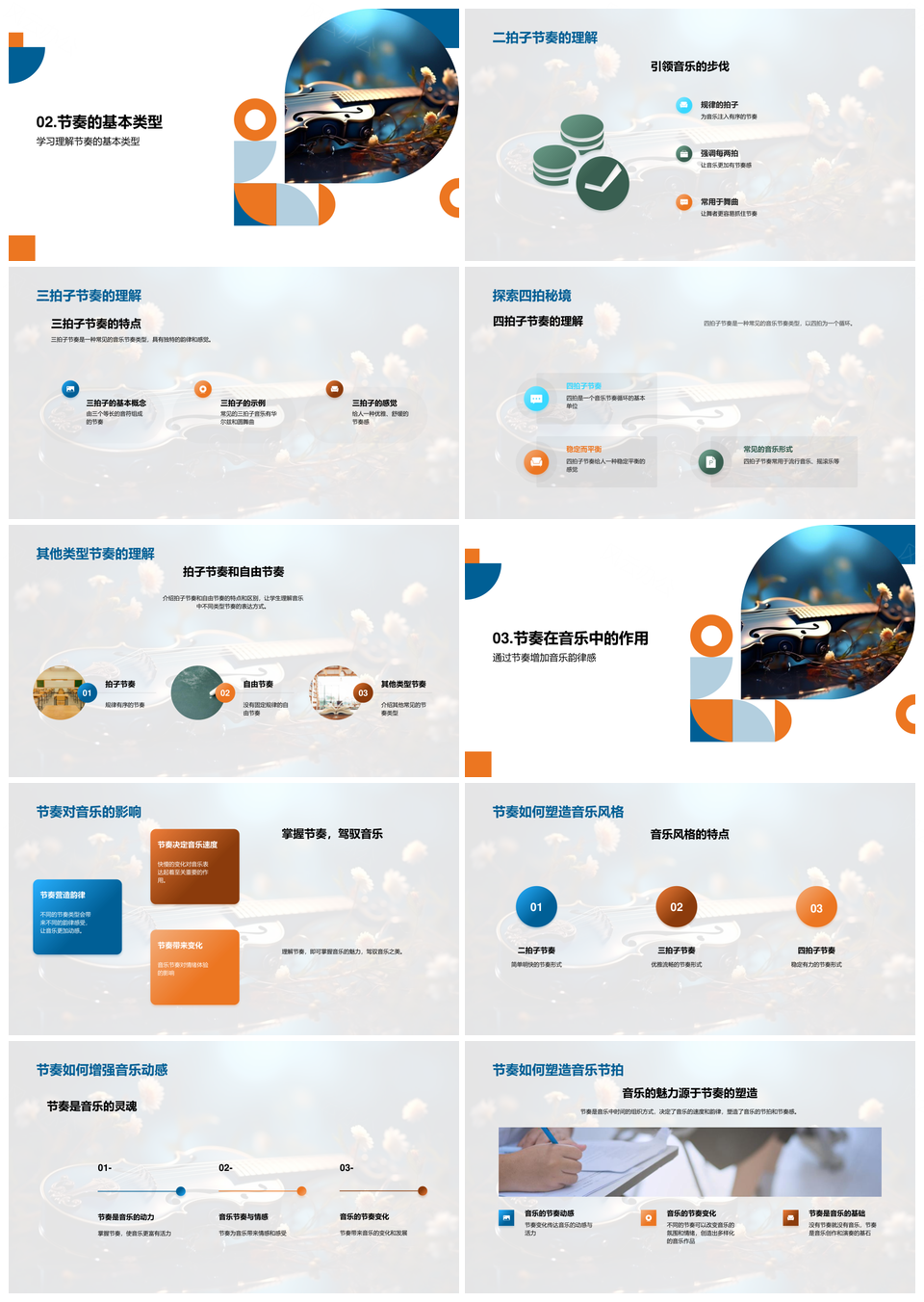 这是一张音乐教师探秘二三四拍节奏动感韵律符号PPT模板,包含音乐教师、探秘、二三四拍、节奏、动感、韵律、符号等主题内容,也可用作音乐教师探秘二三四拍节奏、探秘二三四拍节奏动感、二三四拍节奏动感韵律、节奏动感韵律符号、音乐教师探秘二三四拍、探秘二三四拍节奏、二三四拍节奏动感、节奏动感韵律、动感韵律符号、音乐教师探秘、探秘二三四拍、二三四拍节奏、节奏动感、动感韵律、韵律符号等PPT场景使用。 风云办公提供的音乐教师探秘二三四拍节奏动感韵律符号PPT模板,下载格式为pptx,一共28页,作品中文字及图均可以修改和编辑,图片更改请在作品中右键图片并更换,文字修改请直接点击文字进行修改。