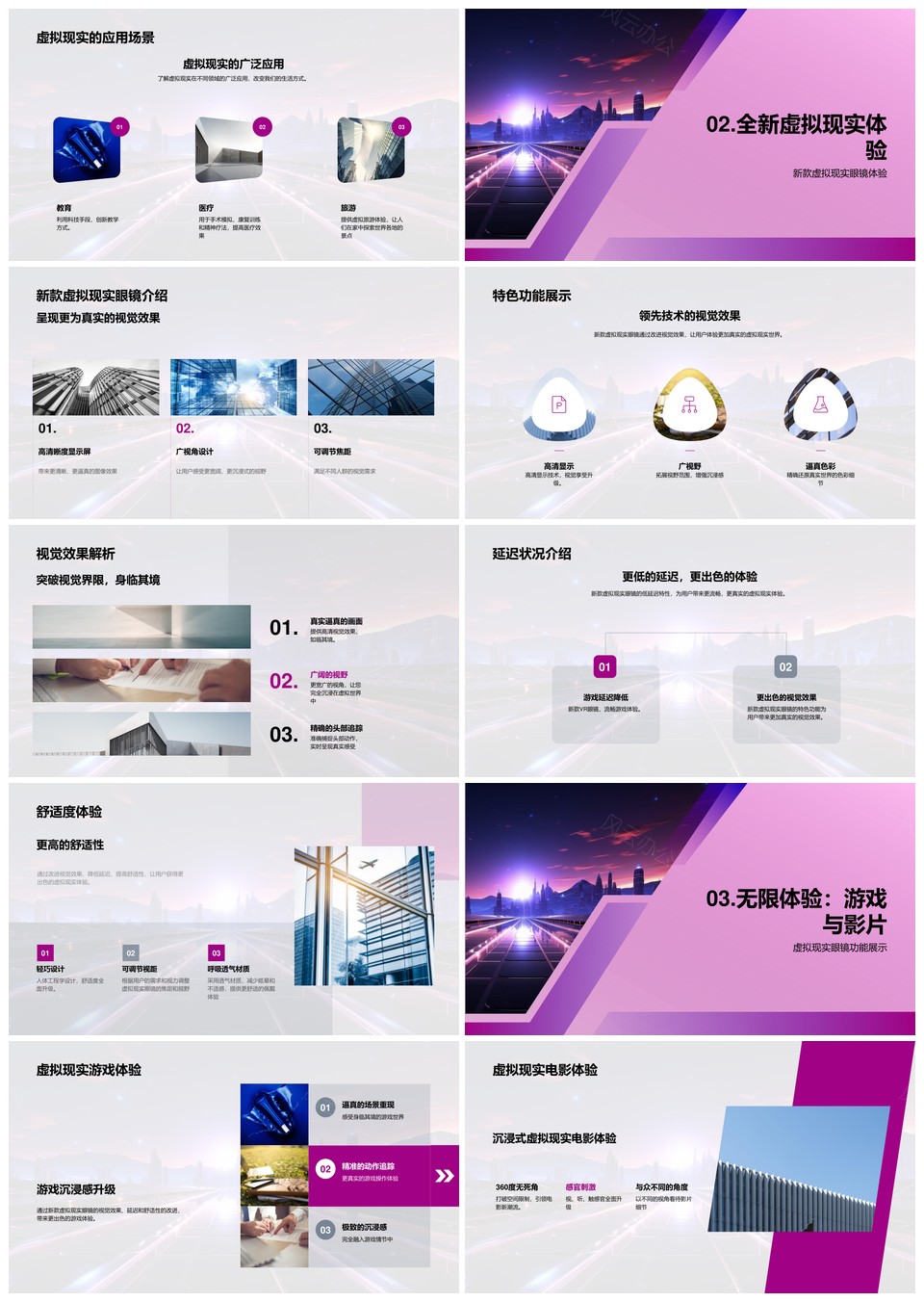 虚拟现实眼镜新款视效低延迟舒适游戏影音体验PPT模板推荐