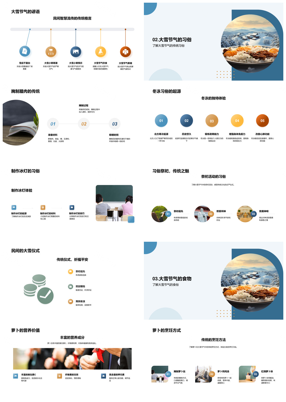 大雪节气民俗冬泳腊肉萝卜雪景文化认同PPT模板推荐