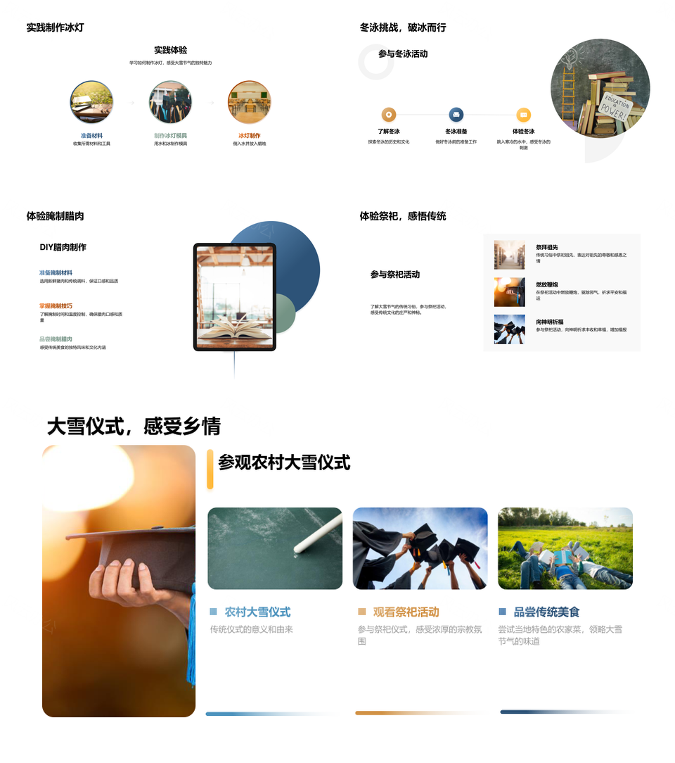 这是一张大雪节气民俗冬泳腊肉萝卜雪景文化认同PPT模板,包含大雪节气、民俗、冬泳、腊肉、萝卜、雪景、文化认同等主题内容,也可用作大雪节气民俗冬泳、节气民俗冬泳腊肉、民俗冬泳腊肉萝卜、冬泳腊肉萝卜雪景、腊肉萝卜雪景文化认同、大雪节气民俗、大雪节气冬泳、大雪节气腊肉、节气民俗冬泳、节气民俗腊肉、民俗冬泳腊肉、民俗冬泳萝卜、冬泳腊肉萝卜、冬泳腊肉雪景、腊肉萝卜雪景等PPT场景使用。 风云办公提供的大雪节气民俗冬泳腊肉萝卜雪景文化认同PPT模板,下载格式为pptx,一共33页,作品中文字及图均可以修改和编辑,图片更改请在作品中右键图片并更换,文字修改请直接点击文字进行修改。