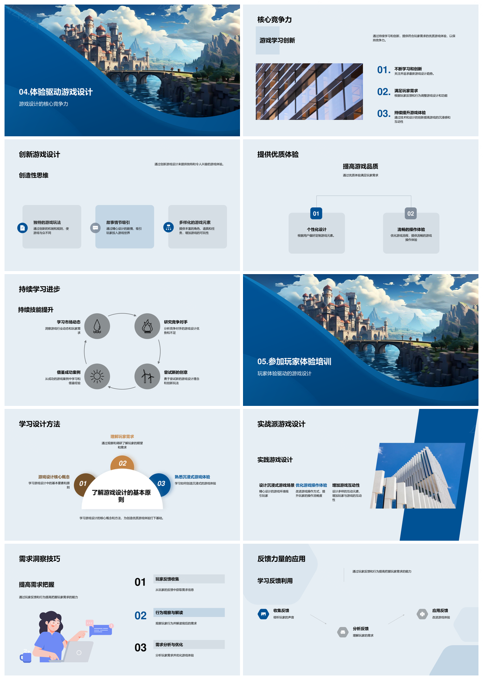 这是一张玩家中心设计沉浸式策略战斗与冒险体验PPT模板,包含玩家中心、设计、沉浸式、策略战斗、冒险体验等主题内容,也可用作玩家中心设计沉浸式策略、中心设计沉浸式策略战斗、设计沉浸式策略战斗冒险、沉浸式策略战斗冒险体验、玩家中心策略战斗冒险、中心策略战斗冒险体验、玩家设计冒险体验、策略战斗冒险体验、玩家中心沉浸式策略、中心沉浸式策略战斗、沉浸式策略战斗体验、玩家策略战斗冒险、设计策略战斗冒险、沉浸式战斗冒险体验、玩家冒险体验等PPT场景使用。 风云办公提供的玩家中心设计沉浸式策略战斗与冒险体验PPT模板,下载格式为pptx,一共28页,作品中文字及图均可以修改和编辑,图片更改请在作品中右键图片并更换,文字修改请直接点击文字进行修改。