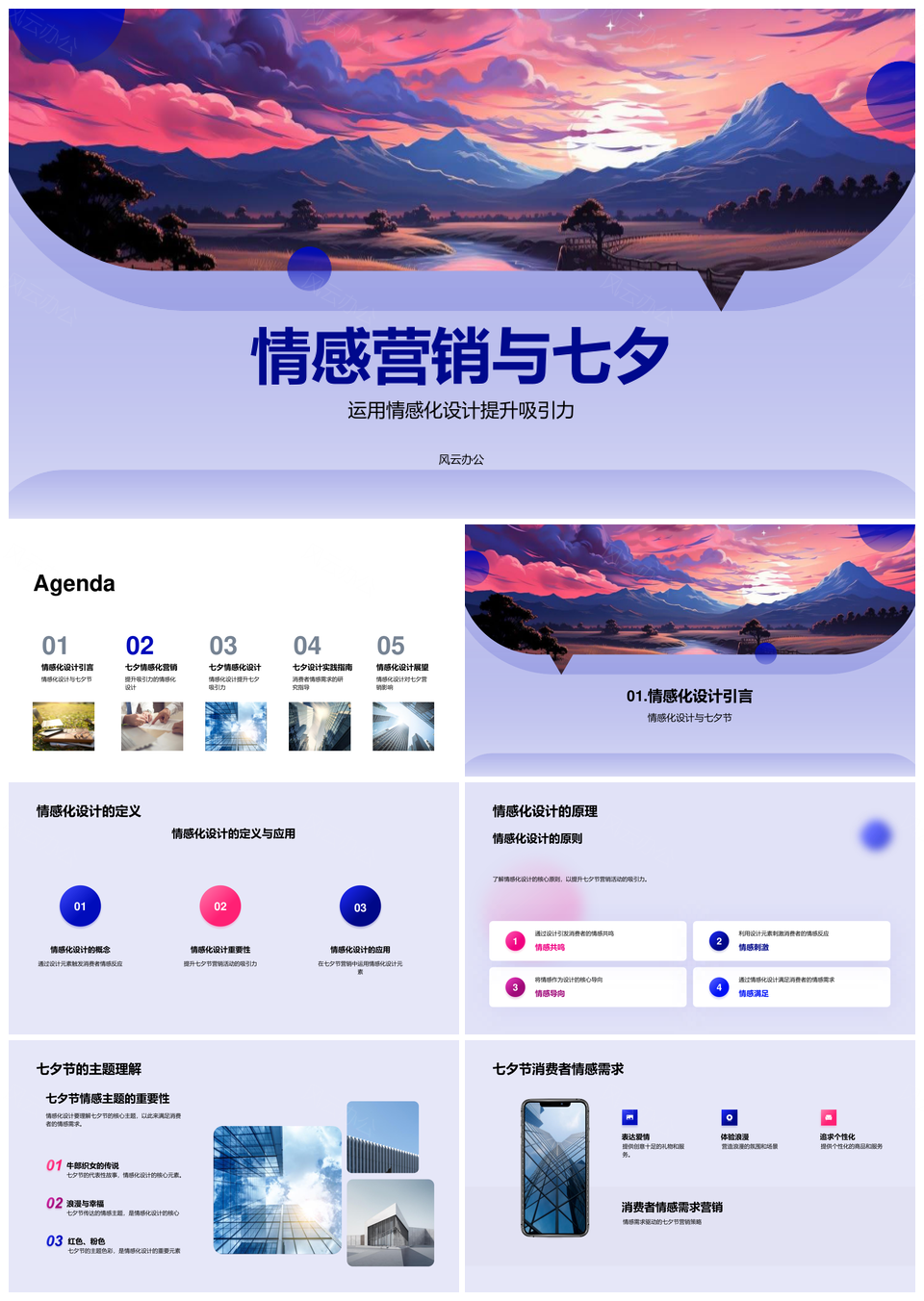 风云办公提供的七夕情感营销艺术设计与策划需求PPT模板,下载格式为pptx,一共28页,作品中文字及图均可以修改和编辑,图片更改请在作品中右键图片并更换,文字修改请直接点击文字进行修改。