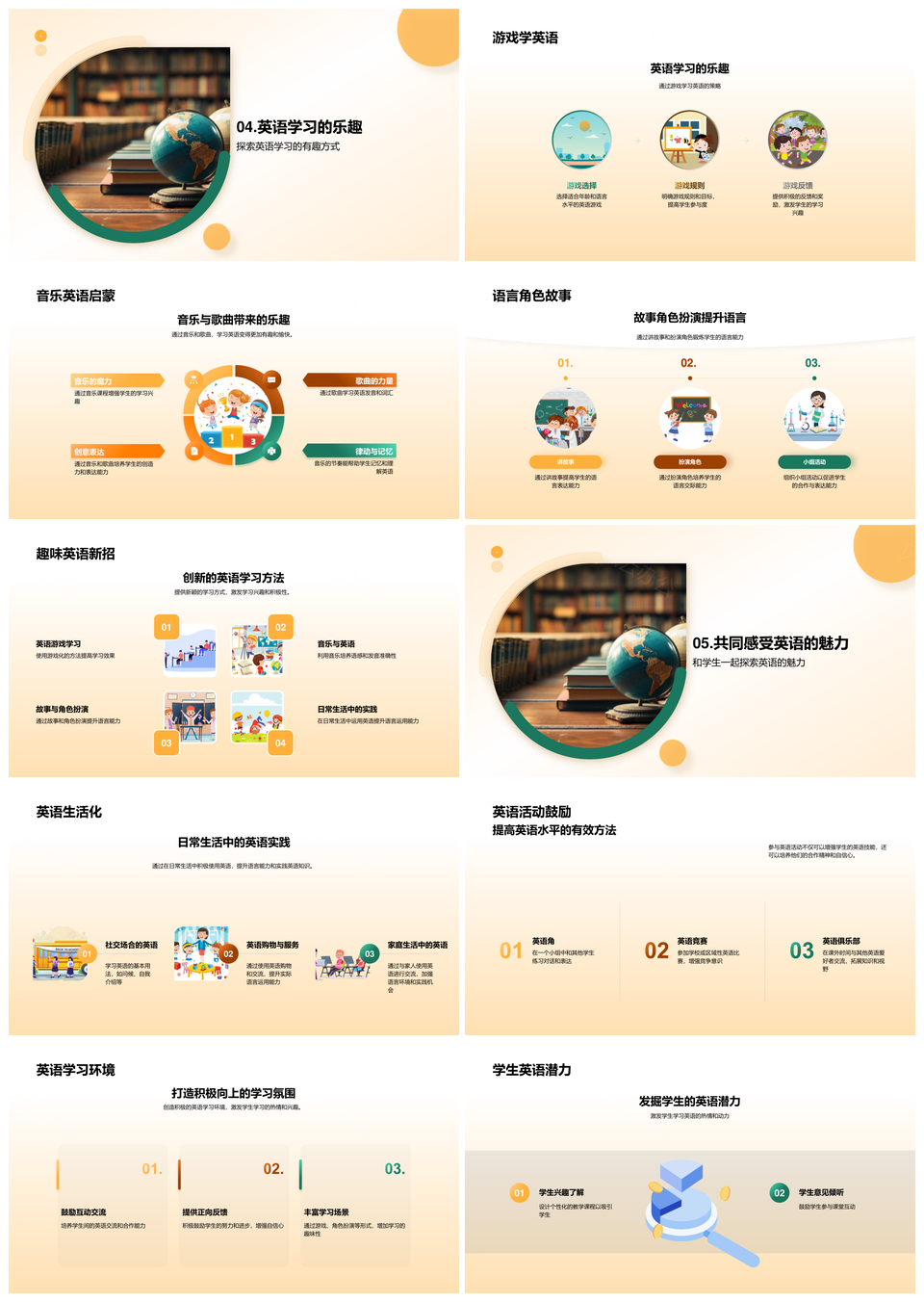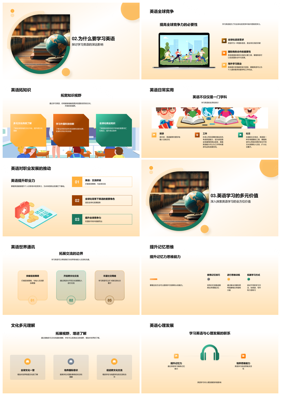 英语学习全球化赋能国际商业科技竞争力PPT模板推荐
