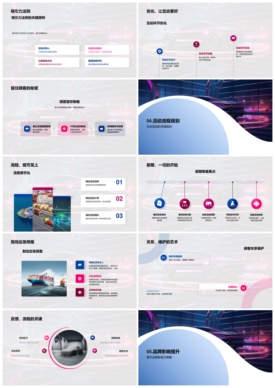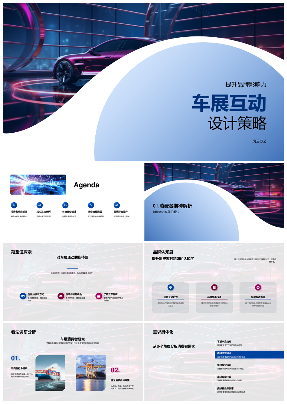 风云办公提供的豪华车展互动设计策略提升品牌影响力PPT模板,下载格式为pptx,一共33页,作品中文字及图均可以修改和编辑,图片更改请在作品中右键图片并更换,文字修改请直接点击文字进行修改。