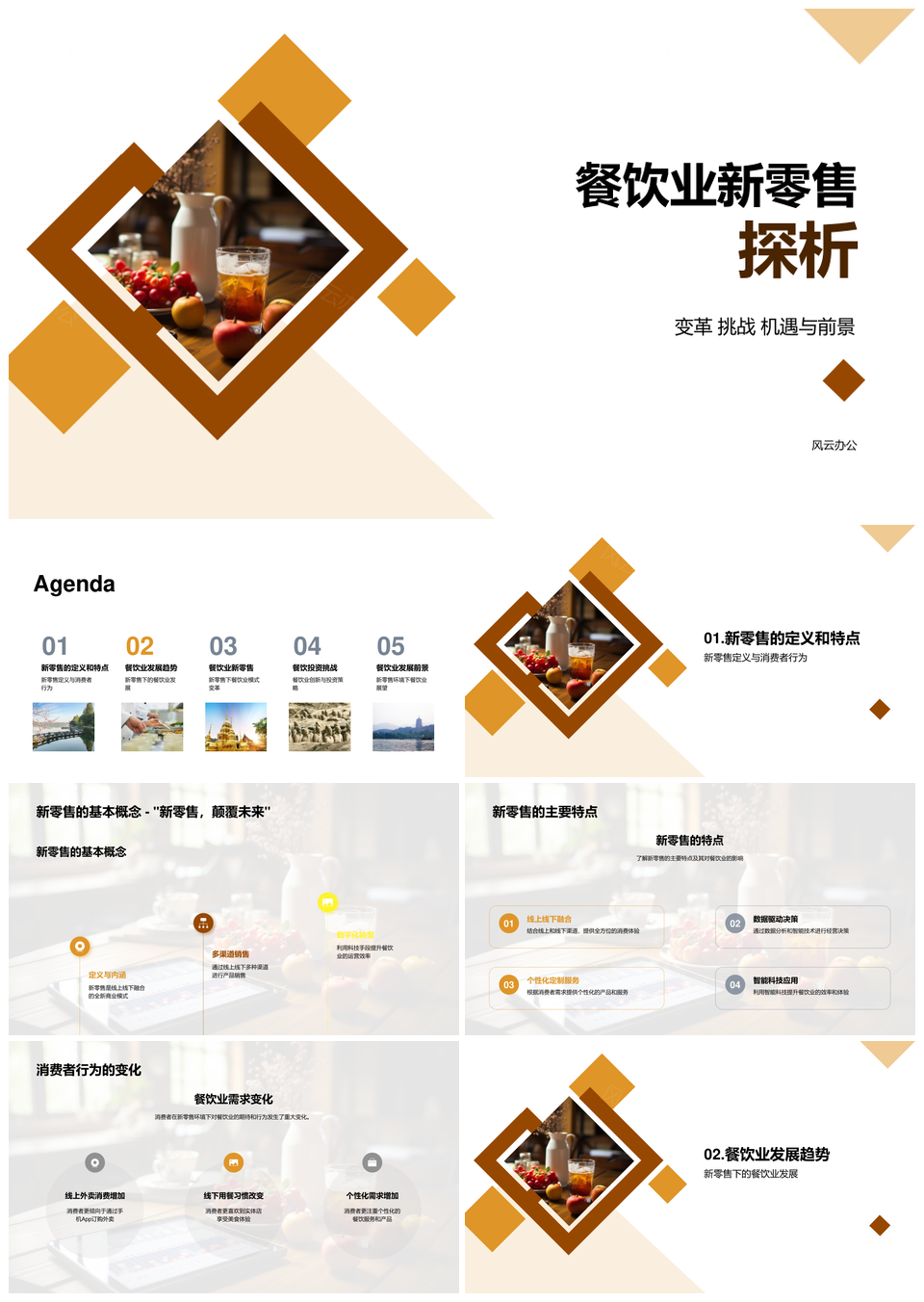 风云办公提供的餐饮业新零售特征消费趋势模式变革PPT模板,下载格式为pptx,一共23页,作品中文字及图均可以修改和编辑,图片更改请在作品中右键图片并更换,文字修改请直接点击文字进行修改。