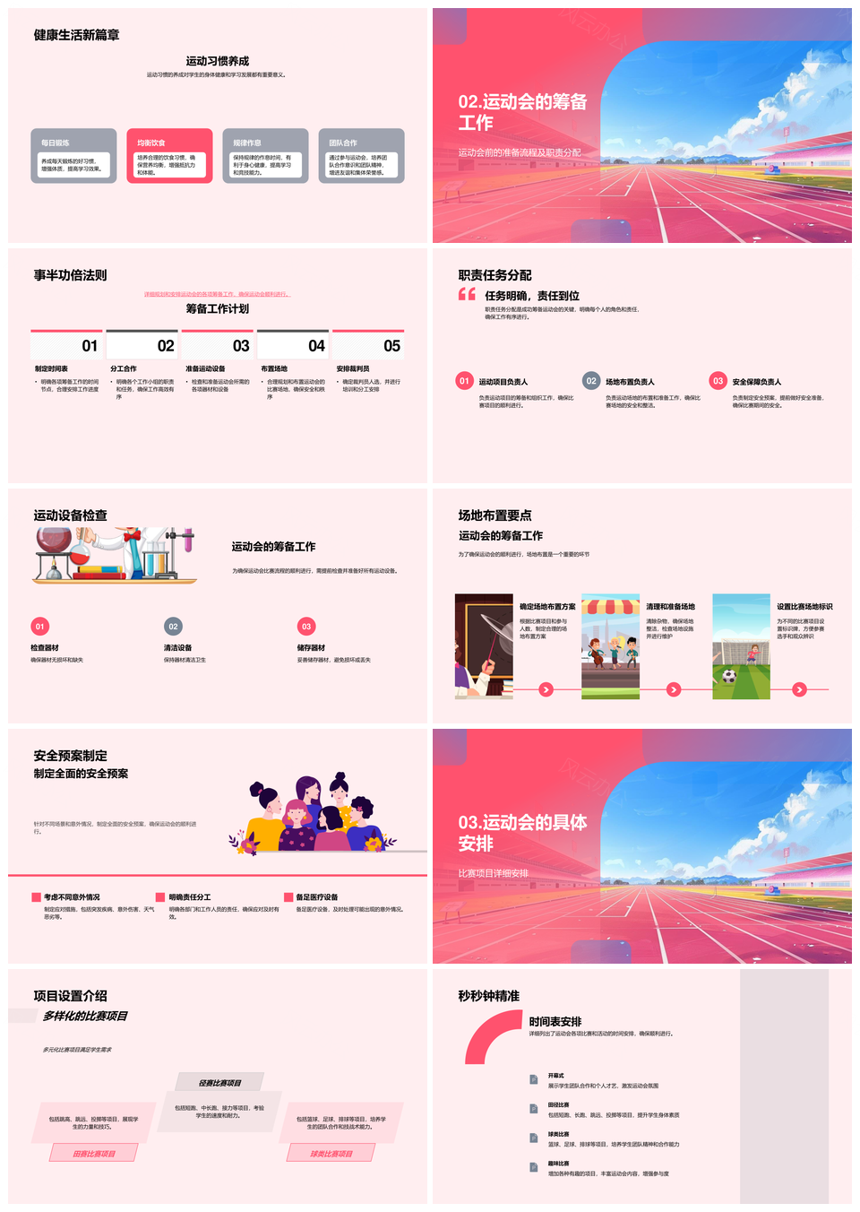 这是一张运动会教学实践素质团队身体素质安全趣味报告PPT模板,包含运动会、教学、实践、素质、团队、身体、安全、趣味、报告等主题内容,也可用作运动会教学实践素质团队、教学实践素质团队身体素质、实践素质团队身体素质安全、素质团队身体素质安全趣味、运动会身体素质安全趣味报告、教学实践团队身体素质安全、运动会教学素质团队、教学实践素质安全、团队身体素质安全趣味、素质团队安全趣味报告、身体素质安全趣味报告、运动会教学实践素质、教学实践素质团队、实践素质团队安全、团队身体素质安全等PPT场景使用。 风云办公提供的运动会教学实践素质团队身体素质安全趣味报告PPT模板,下载格式为pptx,一共33页,作品中文字及图均可以修改和编辑,图片更改请在作品中右键图片并更换,文字修改请直接点击文字进行修改。