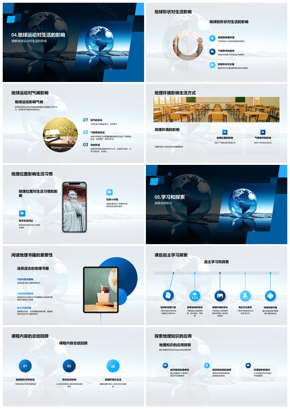 探秘地球运动形态引力板块自转公转环境构造PPT模板推荐