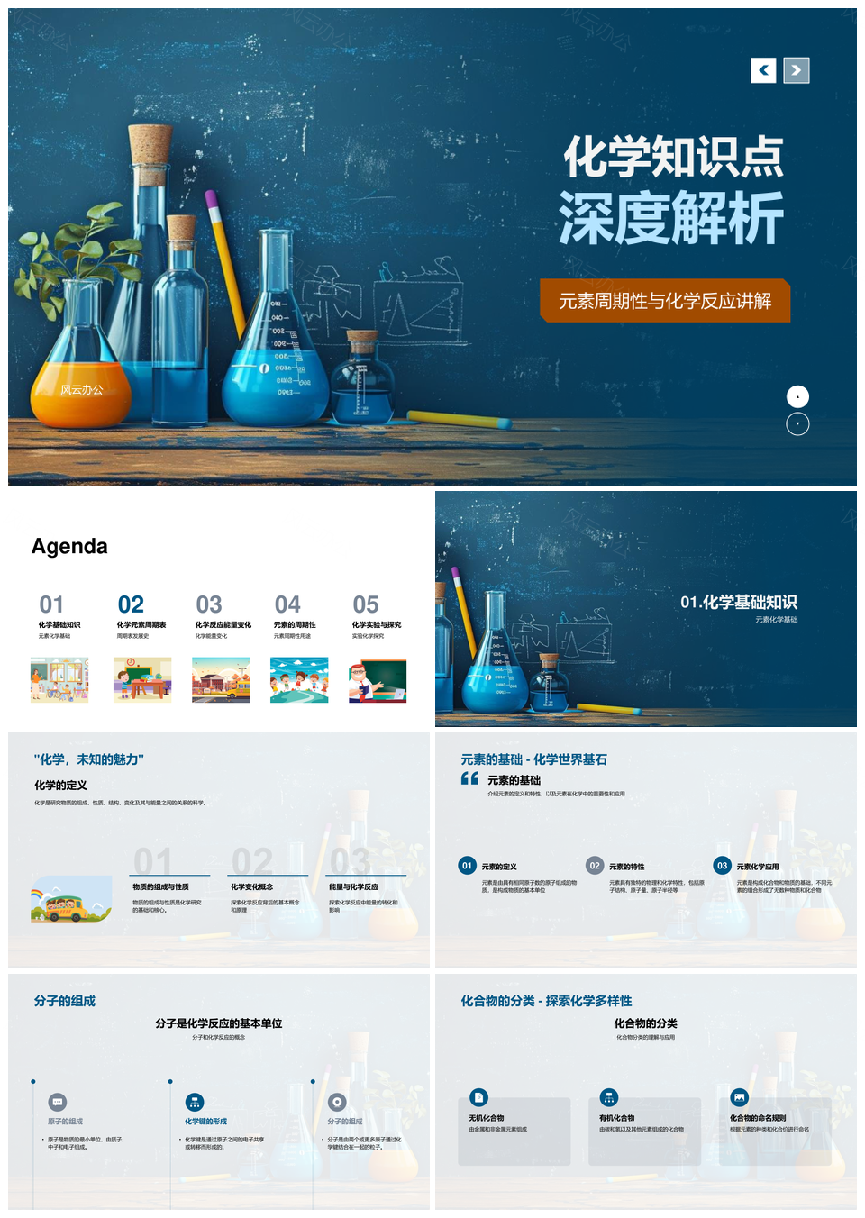 风云办公提供的初中化学元素周期反应分子化合物解析PPT模板,下载格式为pptx,一共33页,作品中文字及图均可以修改和编辑,图片更改请在作品中右键图片并更换,文字修改请直接点击文字进行修改。