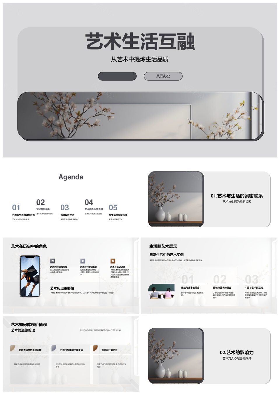 风云办公提供的画笔融艺术生活创情炼经PPT模板,下载格式为pptx,一共23页,作品中文字及图均可以修改和编辑,图片更改请在作品中右键图片并更换,文字修改请直接点击文字进行修改。