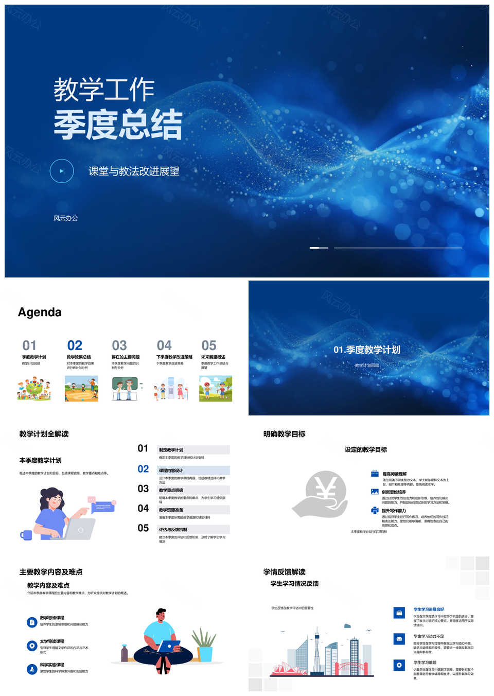 这是一张教学季度总结计划目标内容难点学情统计课堂教法分析PPT模板,包含教学季度、总结、计划、目标、内容、难点、学情、统计、课堂、教法、分析等主题内容,也可用作教学季度总结计划、季度总结计划目标、总结计划目标内容、计划目标内容难点、目标内容难点学情、内容难点学情统计、学情统计课堂教法、教学季度总结、季度总结计划、总结计划目标、计划目标内容、目标内容难点、内容难点学情、难点学情统计、学情统计课堂等PPT场景使用。 风云办公提供的教学季度总结计划目标内容难点学情统计课堂教法分析PPT模板,下载格式为pptx,一共24页,作品中文字及图均可以修改和编辑,图片更改请在作品中右键图片并更换,文字修改请直接点击文字进行修改。