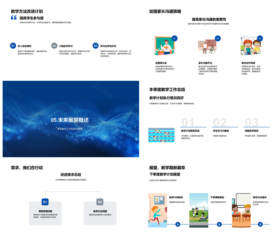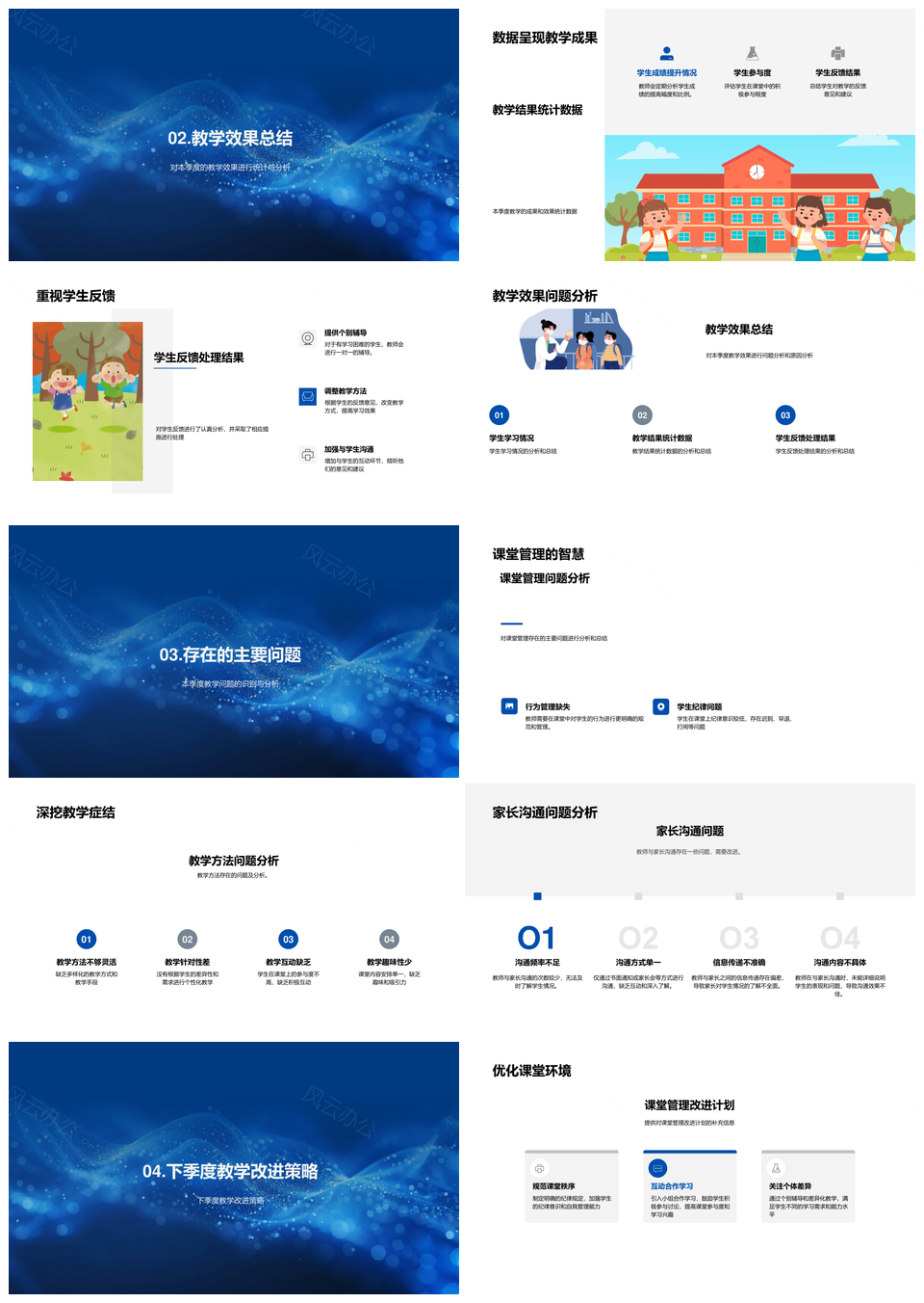 教学季度总结计划目标内容难点学情统计课堂教法分析PPT模板推荐
