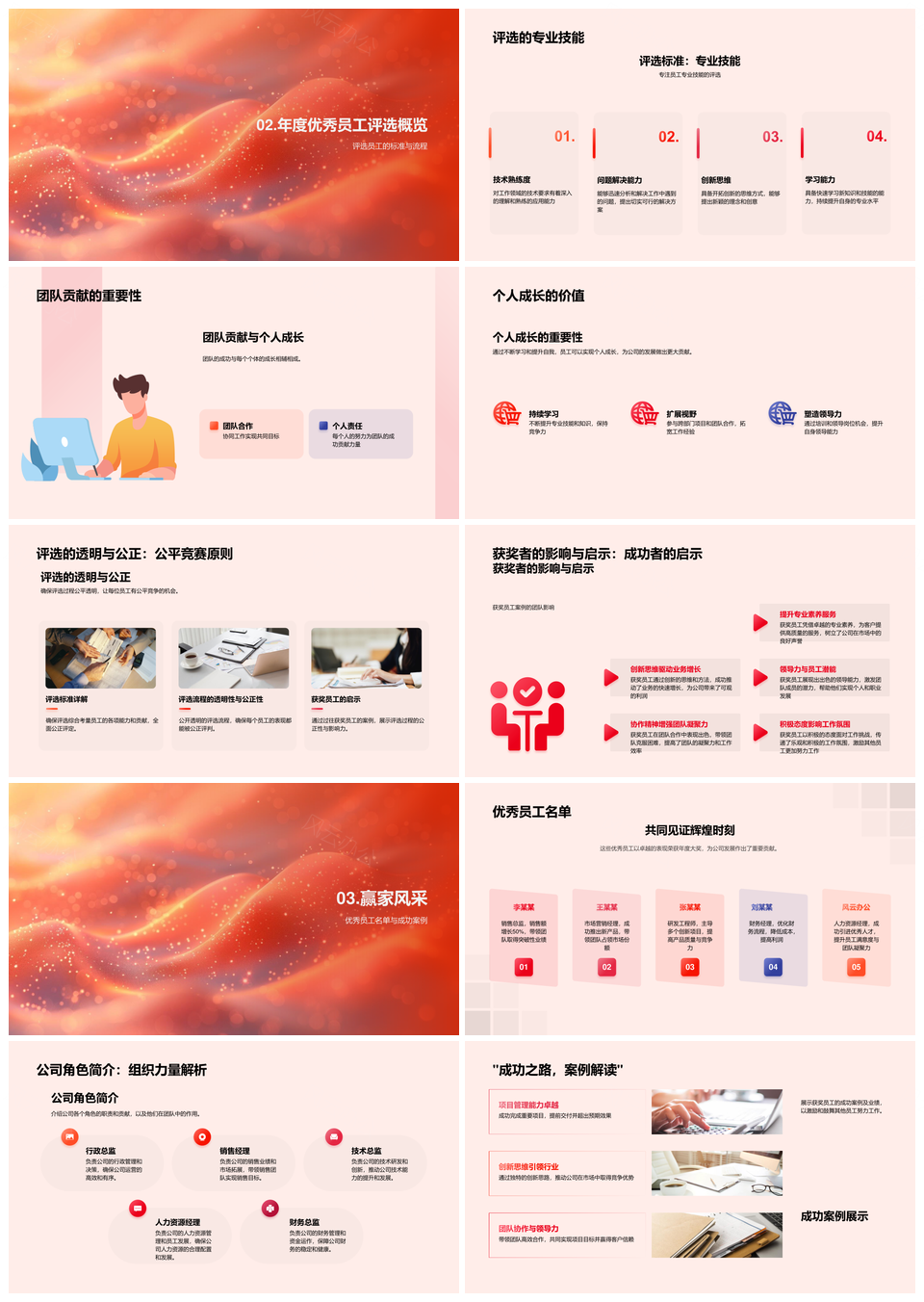 这是一张优秀员工年度使命愿景专精协作创新公正评选PPT模板,包含优秀员工、年度、使命、愿景、专精、协作、创新、公正、评选等主题内容,也可用作优秀员工年度使命愿景、使命愿景专精协作创新、专精协作创新公正评选、优秀员工使命愿景专精、年度使命愿景专精协作、愿景专精协作创新公正、专精协作创新公正评选、优秀员工年度使命专精、优秀员工协作创新公正、使命愿景协作创新公正、优秀员工专精协作创新、年度专精协作创新公正、使命专精协作公正评选、优秀员工创新公正评选、协作创新公正评选使命等PPT场景使用。 风云办公提供的优秀员工年度使命愿景专精协作创新公正评选PPT模板,下载格式为pptx,一共32页,作品中文字及图均可以修改和编辑,图片更改请在作品中右键图片并更换,文字修改请直接点击文字进行修改。