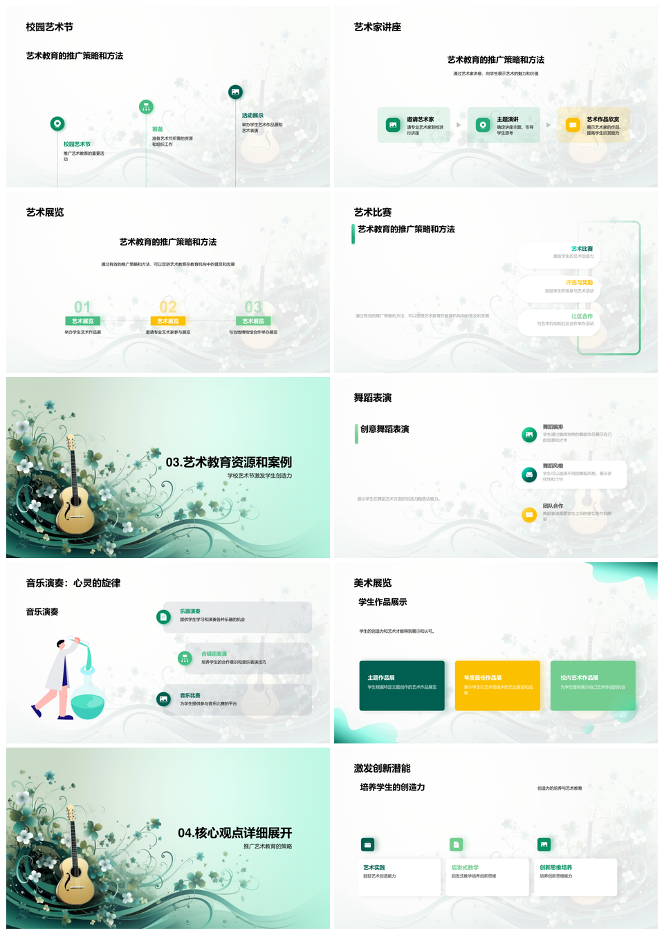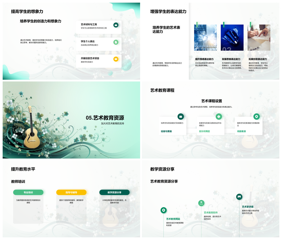 这是一张艺术教育机构推广培养创造力想象力重要性PPT模板,包含艺术教育机构、推广、培养、创造力、想象力、重要性等主题内容,也可用作艺术教育机构推广培养创造力想象力、推广培养创造力想象力重要性、艺术教育机构推广、教育机构推广培养、推广培养创造力想象力、培养创造力想象力重要性、艺术教育机构、教育机构推广、机构推广培养、推广培养创造力、培养创造力想象力、创造力想象力重要性、艺术教育、教育机构、机构推广等PPT场景使用。 风云办公提供的艺术教育机构推广培养创造力想象力重要性PPT模板,下载格式为pptx,一共24页,作品中文字及图均可以修改和编辑,图片更改请在作品中右键图片并更换,文字修改请直接点击文字进行修改。