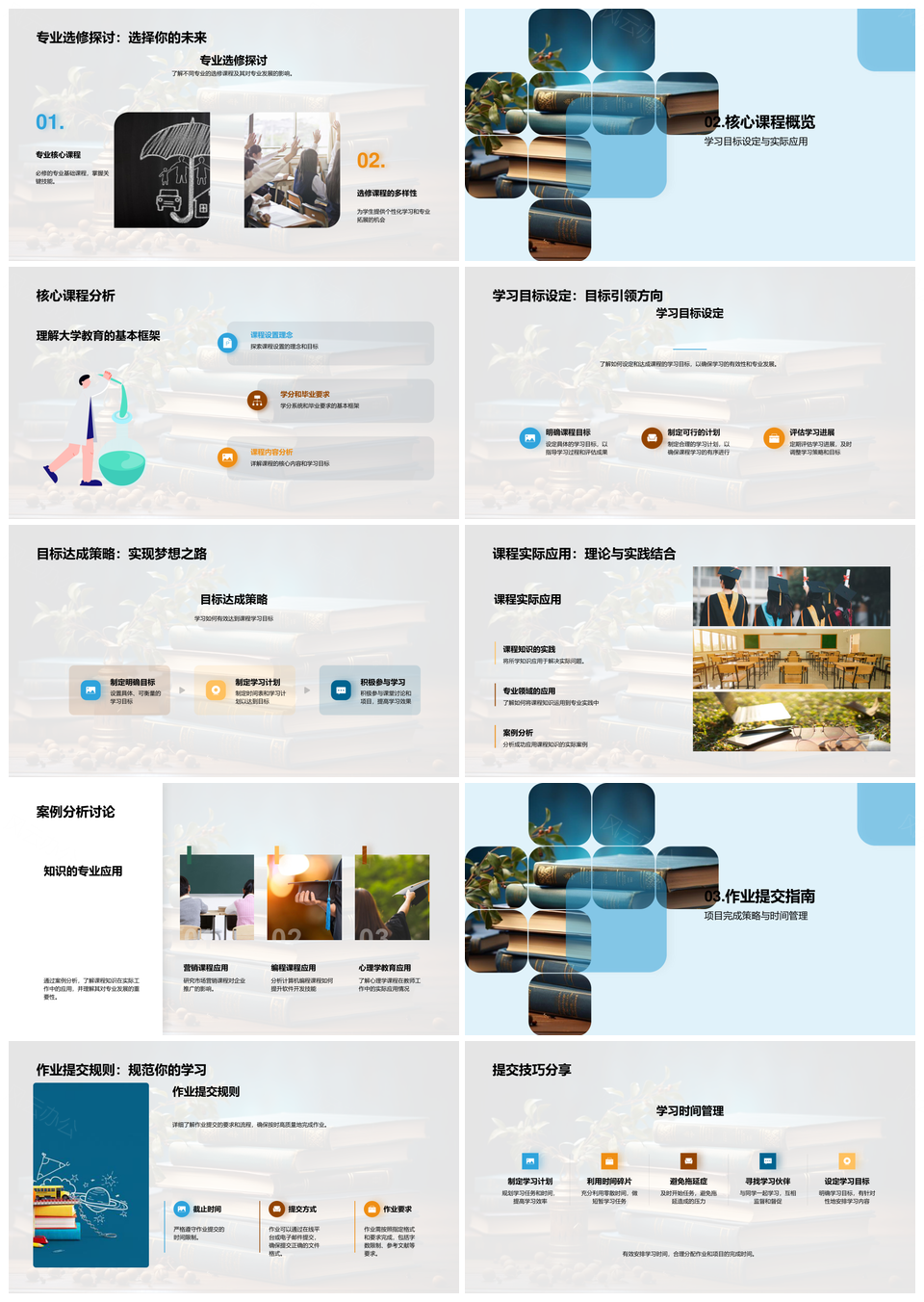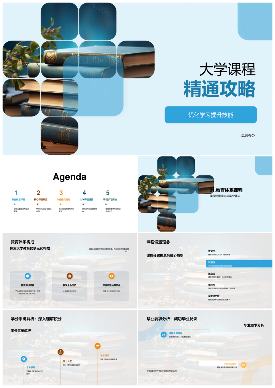 风云办公提供的大学课程学分优化毕业攻略PPT模板,下载格式为pptx,一共33页,作品中文字及图均可以修改和编辑,图片更改请在作品中右键图片并更换,文字修改请直接点击文字进行修改。