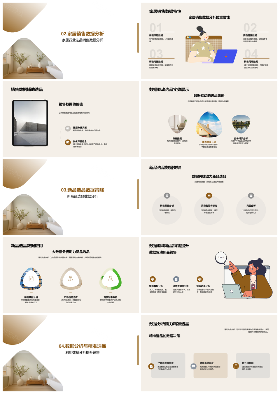 风云办公提供的数据驱动电商家居选品策略分析PPT模板,下载格式为pptx,一共24页,作品中文字及图均可以修改和编辑,图片更改请在作品中右键图片并更换,文字修改请直接点击文字进行修改。