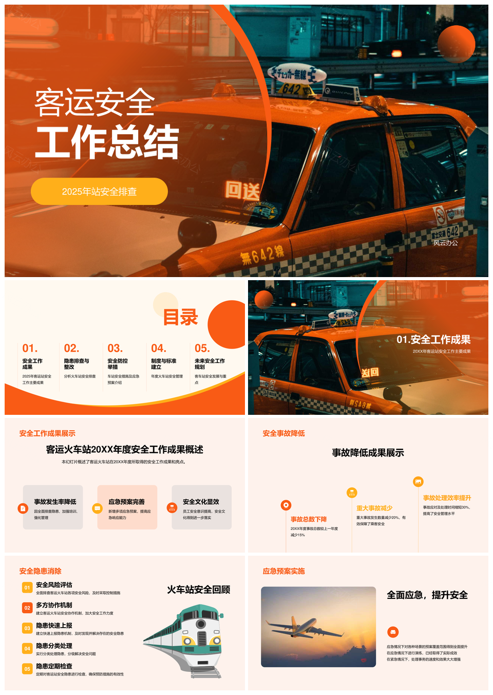 2025橙色商务现代交通客流运输安全工作总结汇报PPT模板推荐