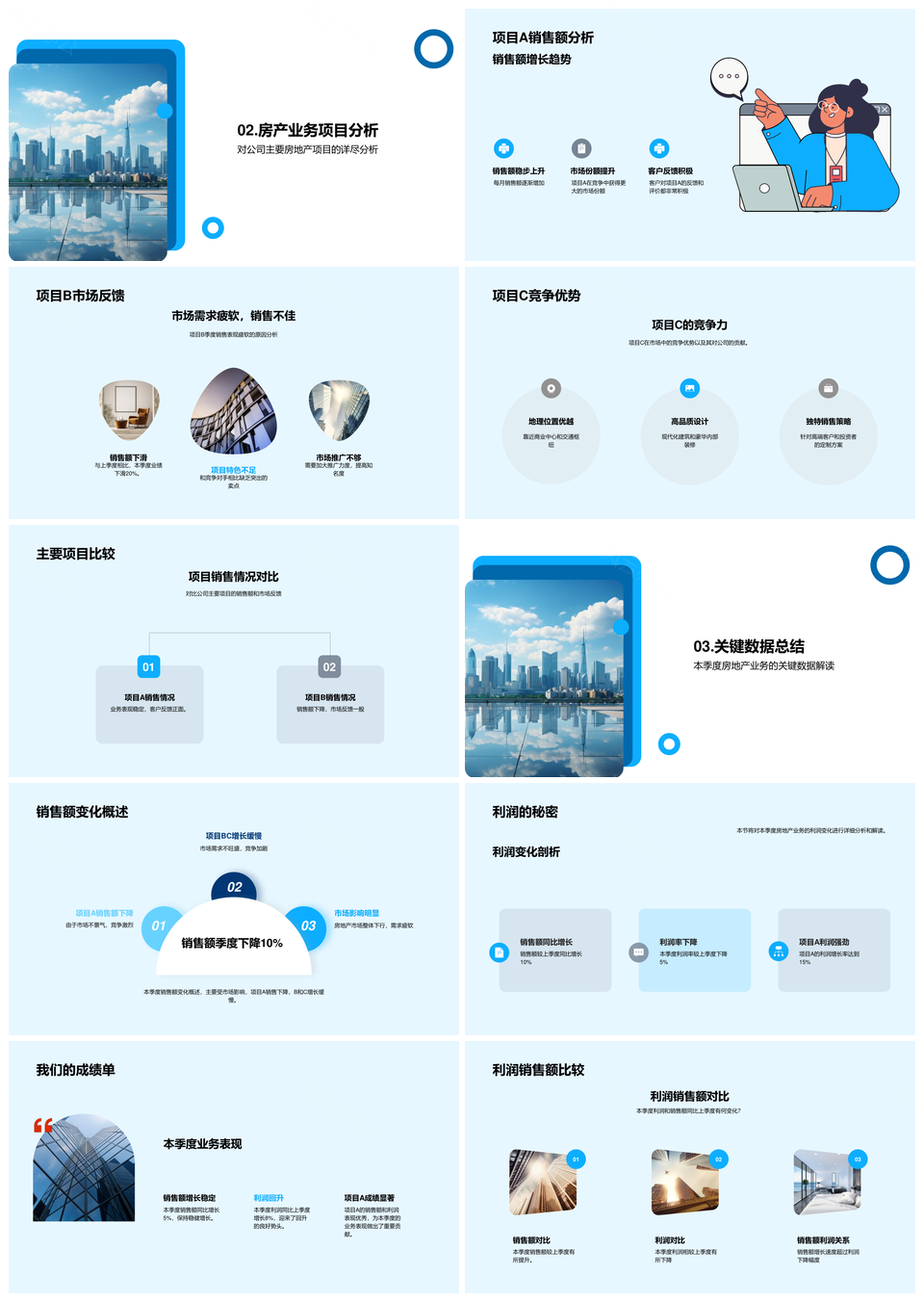 房产业务季度市场趋势销售额利润项目AB摩天大楼未来规划PPT模板推荐