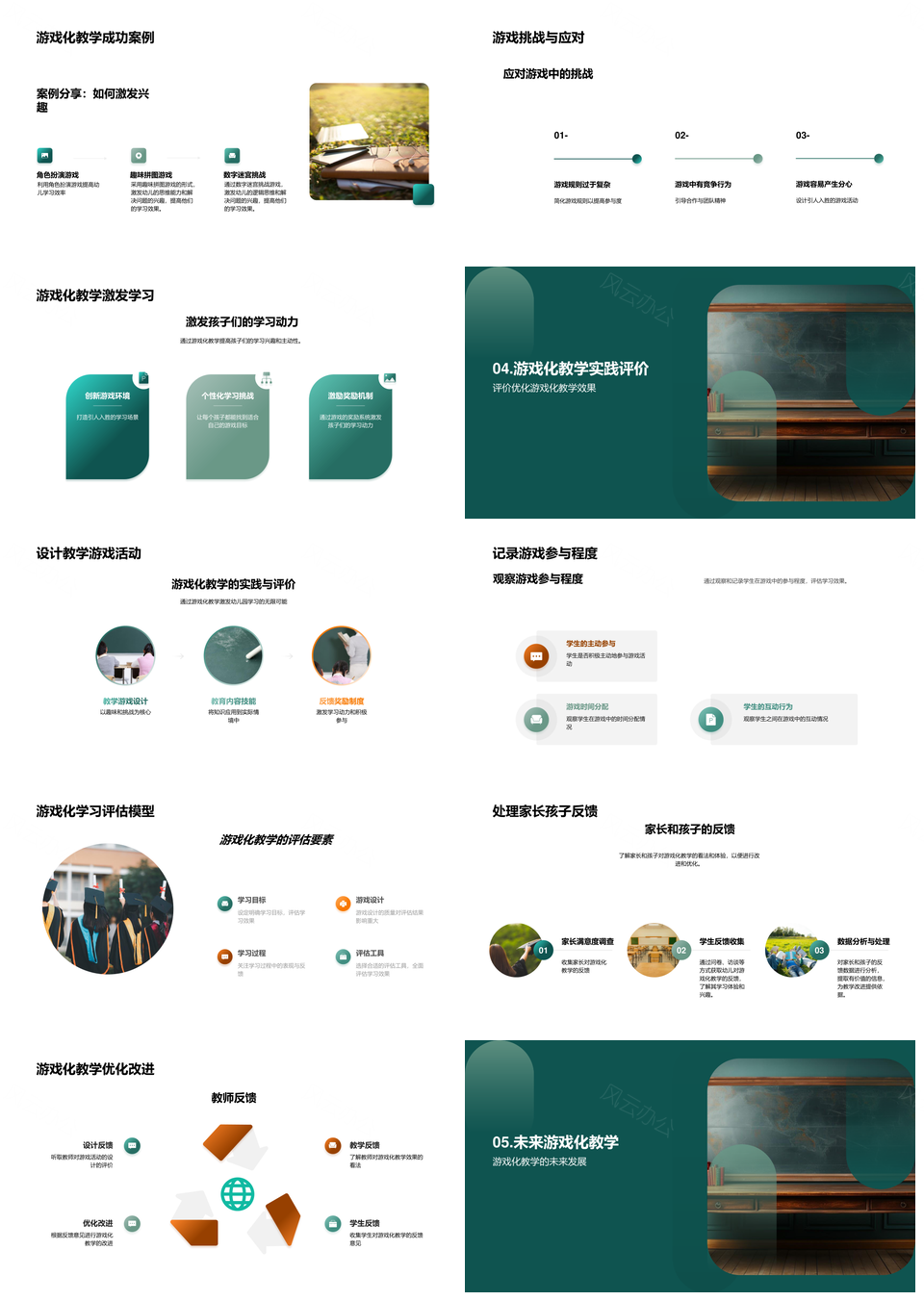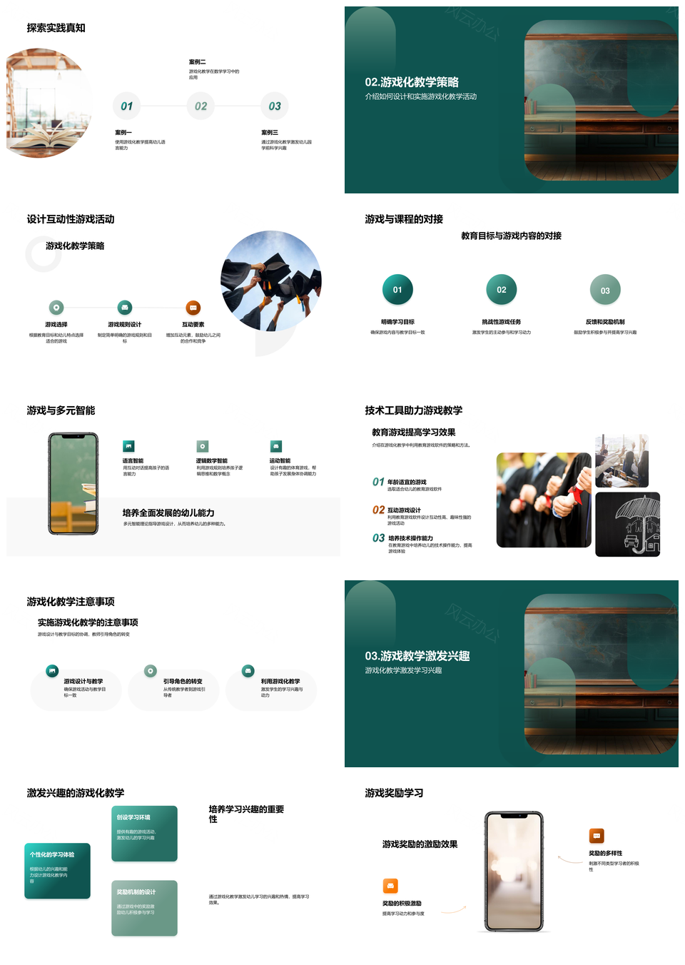 风云办公提供的游戏化教学激发幼儿多元智能互动活动PPT模板,下载格式为pptx,一共33页,作品中文字及图均可以修改和编辑,图片更改请在作品中右键图片并更换,文字修改请直接点击文字进行修改。