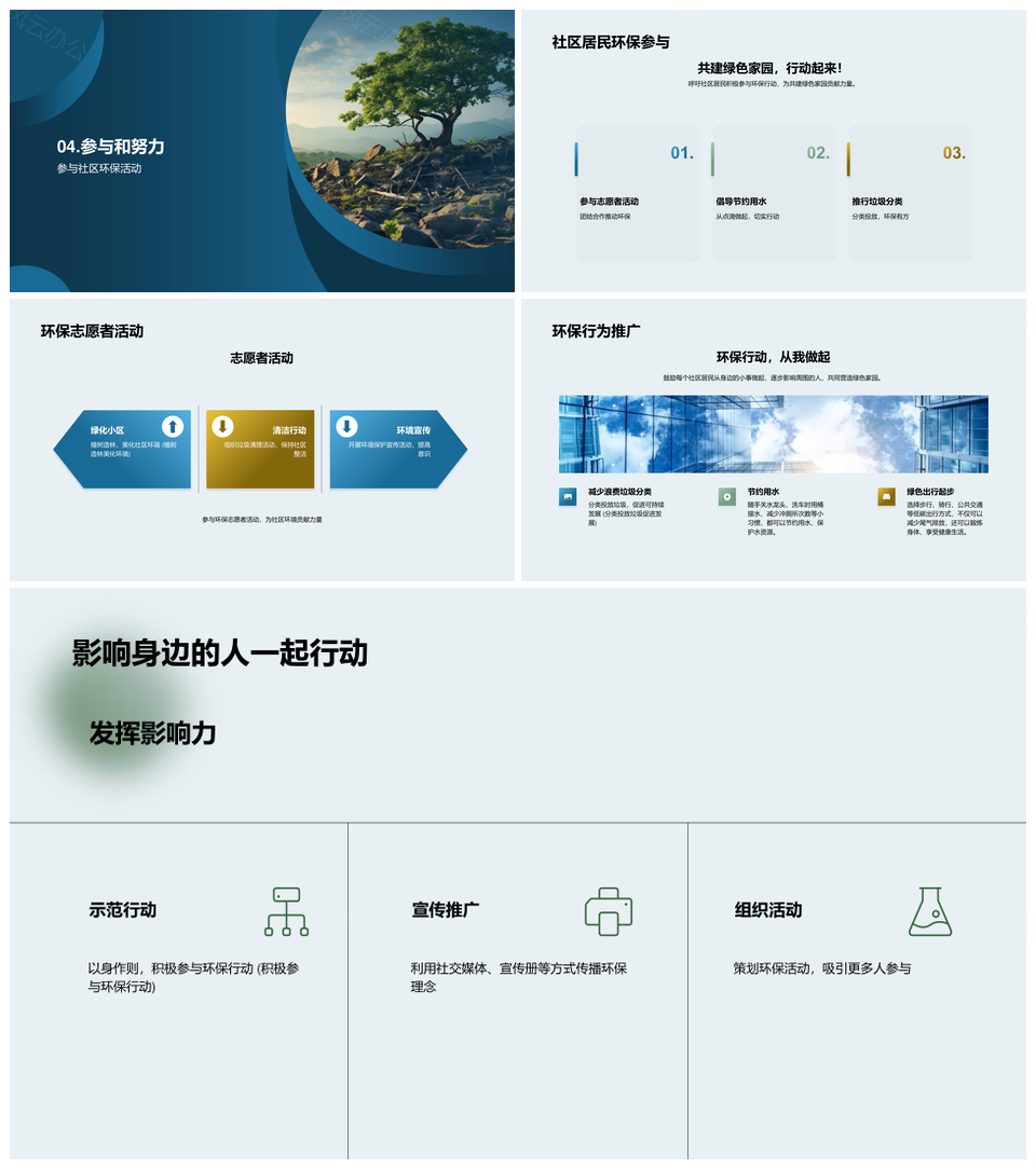这是一张社区居民共建绿色家园环保提升生活质量PPT模板,包含社区居民、共建、绿色家园、环保、提升、生活质量等主题内容,也可用作社区居民共建绿色家园、居民共建绿色家园环保、共建绿色家园环保提升、绿色家园环保提升生活质量、社区居民共建绿色、居民共建绿色家园、共建绿色家园环保、绿色家园环保提升、社区共建绿色家园、居民绿色家园环保、共建环保提升生活质量、绿色环保提升生活质量、社区居民共建、共建绿色家园、绿色家园环保、环保提升生活质量等PPT场景使用。 风云办公提供的社区居民共建绿色家园环保提升生活质量PPT模板,下载格式为pptx,一共23页,作品中文字及图均可以修改和编辑,图片更改请在作品中右键图片并更换,文字修改请直接点击文字进行修改。