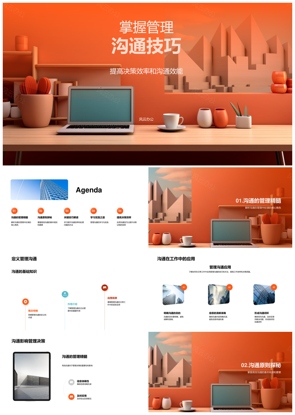 风云办公提供的管理沟通技巧提升决策效率与沟通效能PPT模板,下载格式为pptx,一共22页,作品中文字及图均可以修改和编辑,图片更改请在作品中右键图片并更换,文字修改请直接点击文字进行修改。