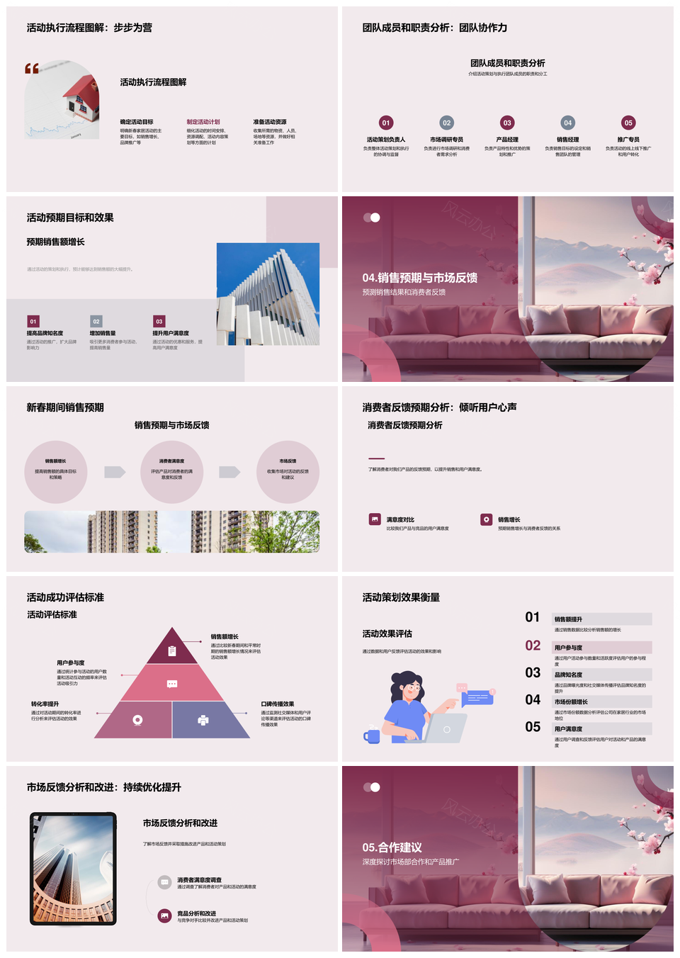 新春家居樱花树营销策略产品优势活动策划合作推广增销PPT模板推荐