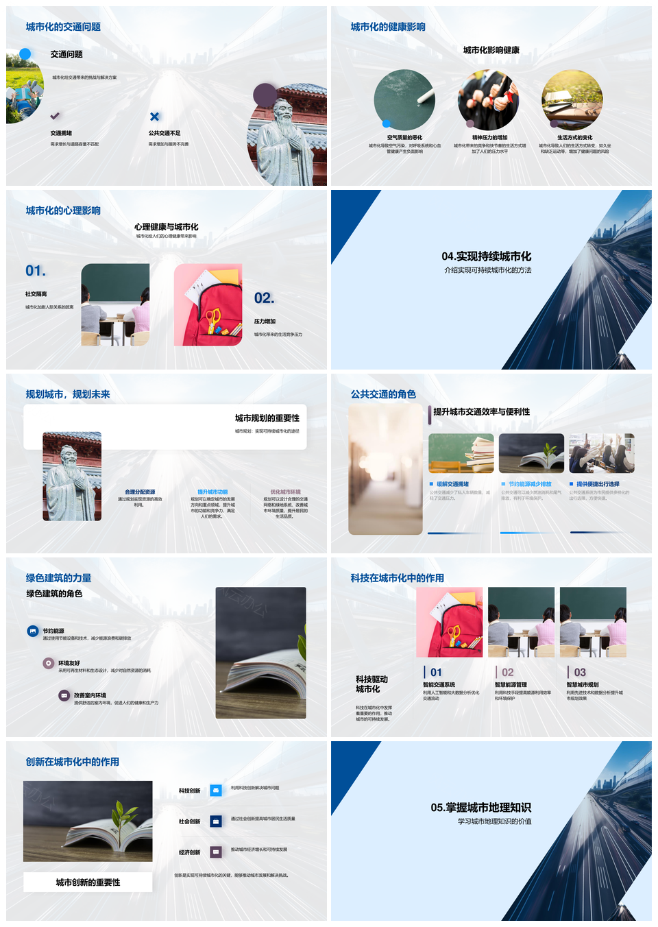城市化人口挑战与可持续城市规划资源环境PPT模板