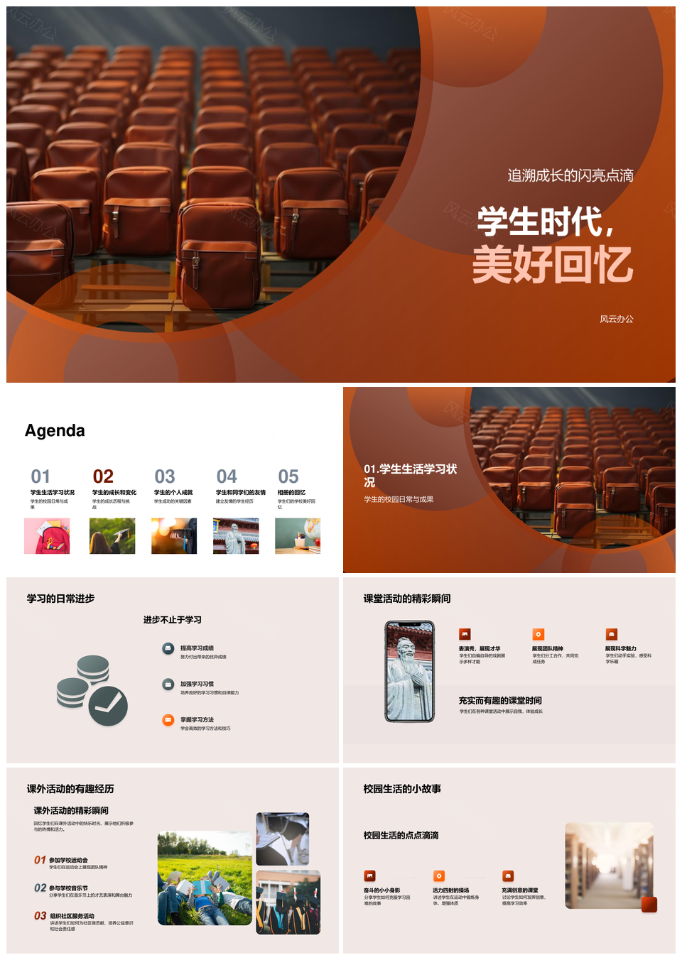 风云办公提供的学生时代书包相册珍藏成长点滴回忆PPT模板,下载格式为pptx,一共28页,作品中文字及图均可以修改和编辑,图片更改请在作品中右键图片并更换,文字修改请直接点击文字进行修改。