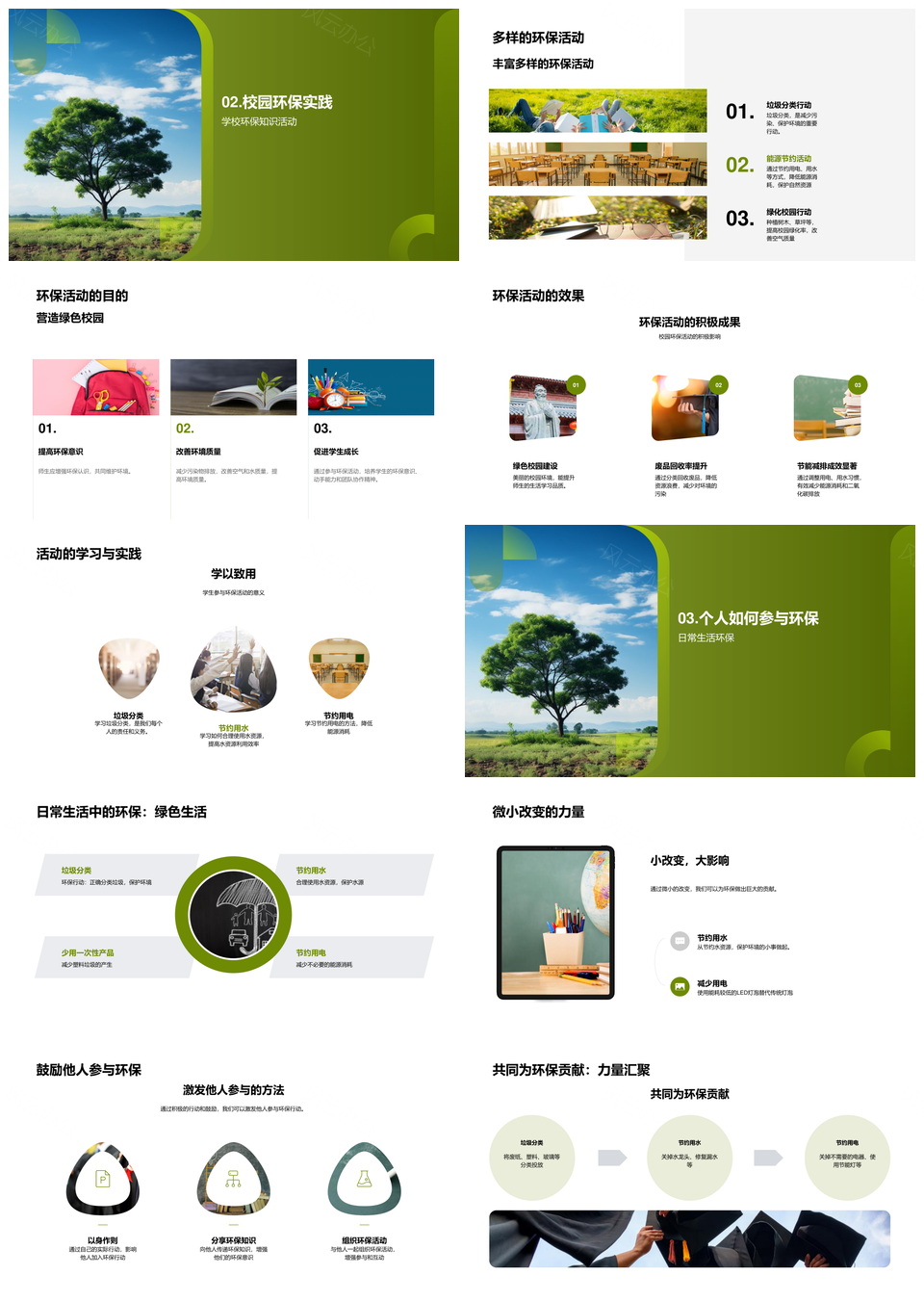 这是一张生物老师引领师生共建绿色校园践行环保教育PPT模板,包含生物老师、引领、师生、共建、绿色校园、践行、环保教育等主题内容,也可用作生物老师引领师生共建绿色校园、引领师生共建绿色校园践行、师生共建绿色校园践行环保教育、共建绿色校园践行环保教育、生物老师引领师生共建、引领师生共建绿色校园、师生共建绿色校园践行、共建绿色校园践行环保教育、生物老师引领师生、引领师生共建、师生共建绿色校园、共建绿色校园践行、生物老师引领、引领师生、师生共建等PPT场景使用。 风云办公提供的生物老师引领师生共建绿色校园践行环保教育PPT模板,下载格式为pptx,一共28页,作品中文字及图均可以修改和编辑,图片更改请在作品中右键图片并更换,文字修改请直接点击文字进行修改。
