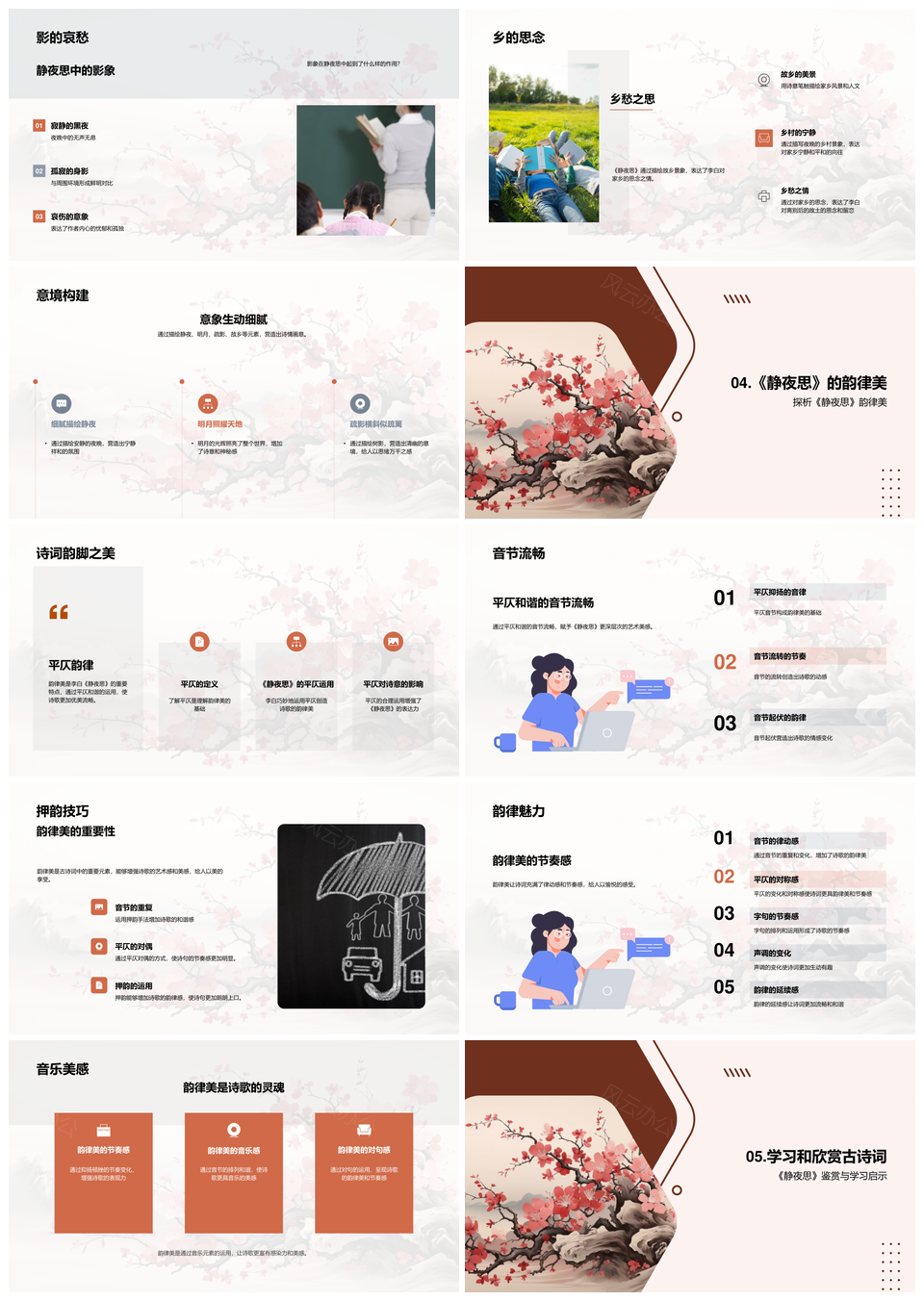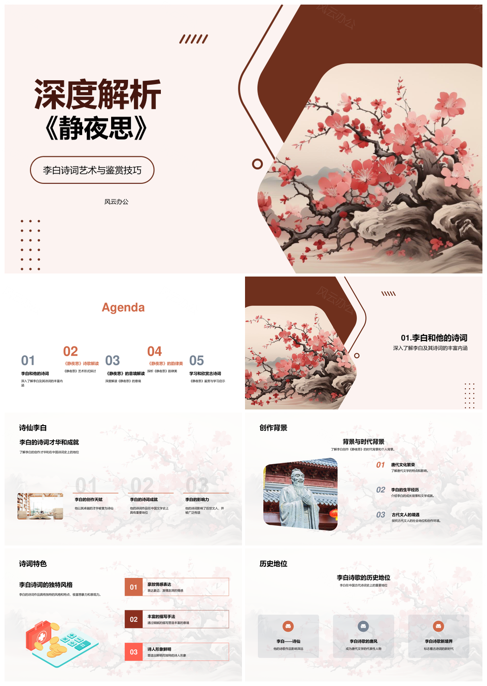 李白静夜思艺术特色创作背景历史地位赏析PPT模板推荐