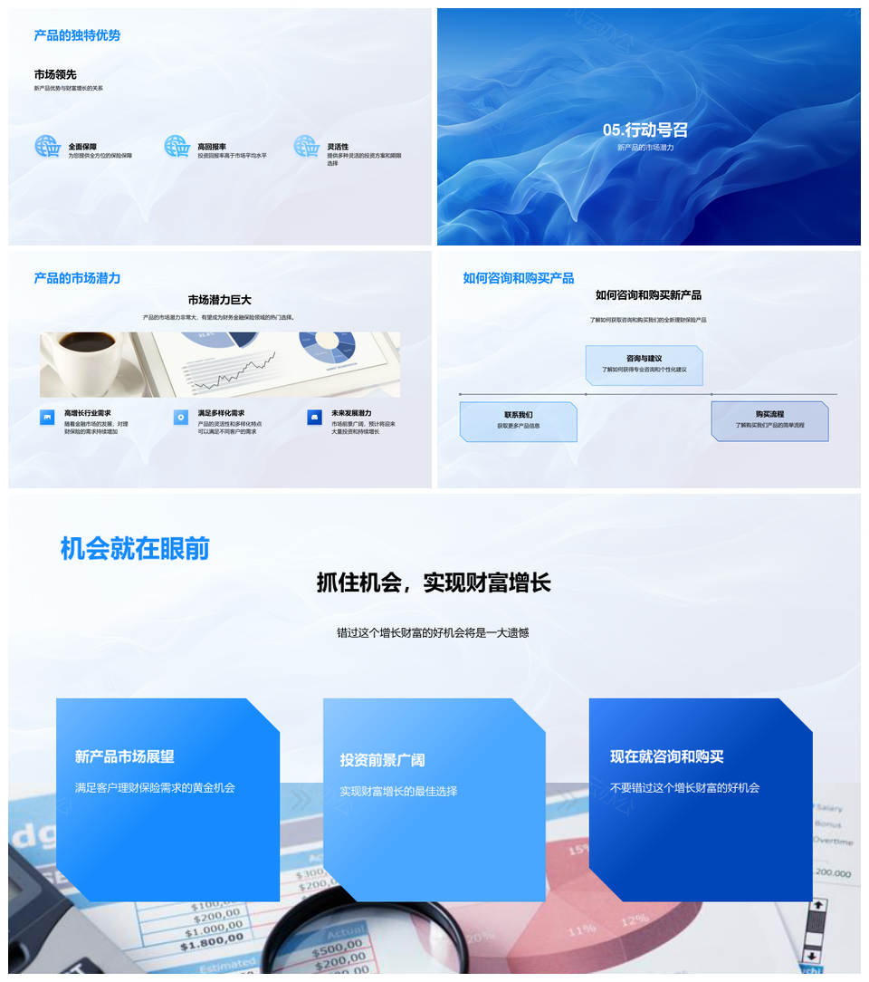 这是一张理财保险新产品投资策略设计回报市场竞争力PPT模板,包含理财保险、新产品、投资策略、设计、回报、市场竞争力等主题内容,也可用作理财保险新产品投资、保险新产品投资策略、新产品投资策略设计、投资策略设计回报、策略设计回报市场、设计回报市场竞争力、理财保险新产品、保险新产品策略、新产品投资设计、投资策略回报、策略设计市场、设计回报市场、理财投资策略、保险产品投资、市场竞争力回报等PPT场景使用。 风云办公提供的理财保险新产品投资策略设计回报市场竞争力PPT模板,下载格式为pptx,一共23页,作品中文字及图均可以修改和编辑,图片更改请在作品中右键图片并更换,文字修改请直接点击文字进行修改。