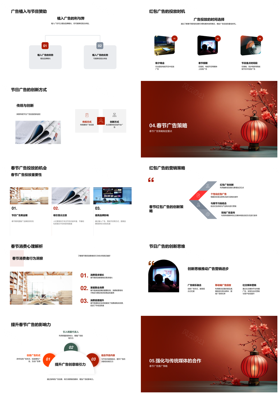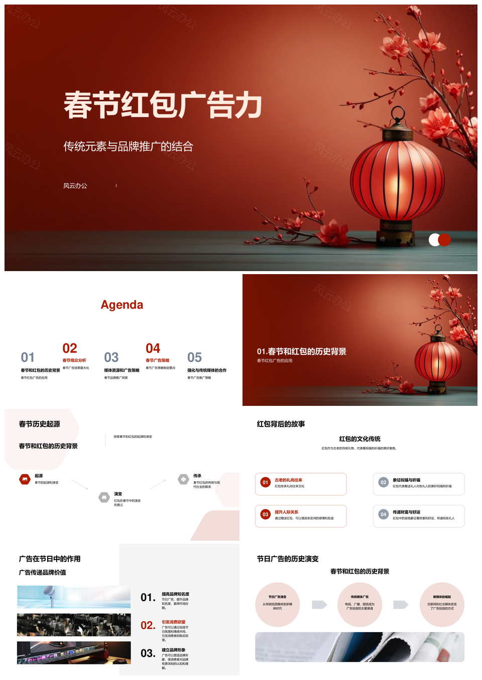 风云办公提供的春节红包广告传统助力品牌推广PPT模板,下载格式为pptx,一共33页,作品中文字及图均可以修改和编辑,图片更改请在作品中右键图片并更换,文字修改请直接点击文字进行修改。