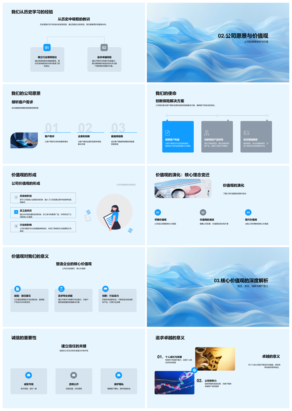 保险公司文化发展历程愿景价值观诚信专业PPT模板