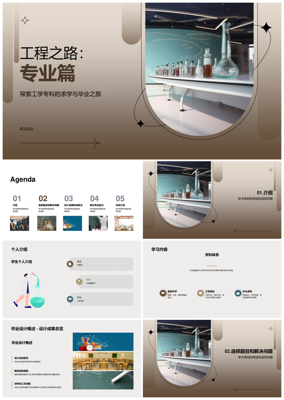 风云办公提供的工学专科生毕业答辩与学术演讲PPT模板,下载格式为pptx,一共23页,作品中文字及图均可以修改和编辑,图片更改请在作品中右键图片并更换,文字修改请直接点击文字进行修改。