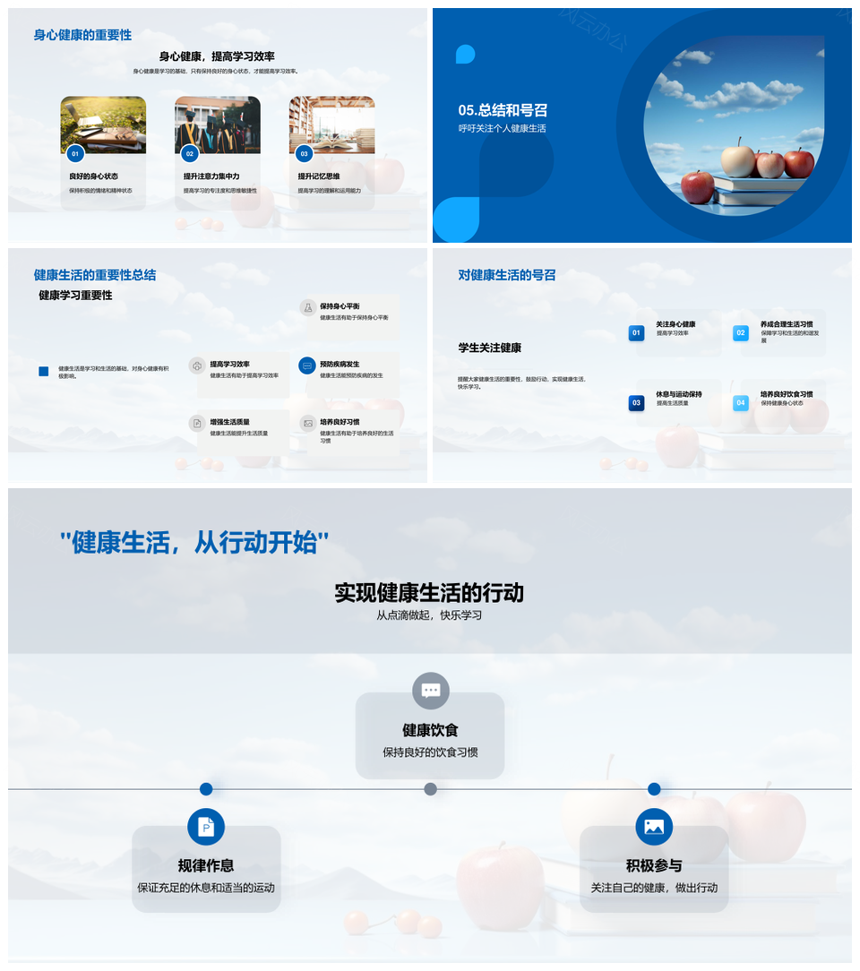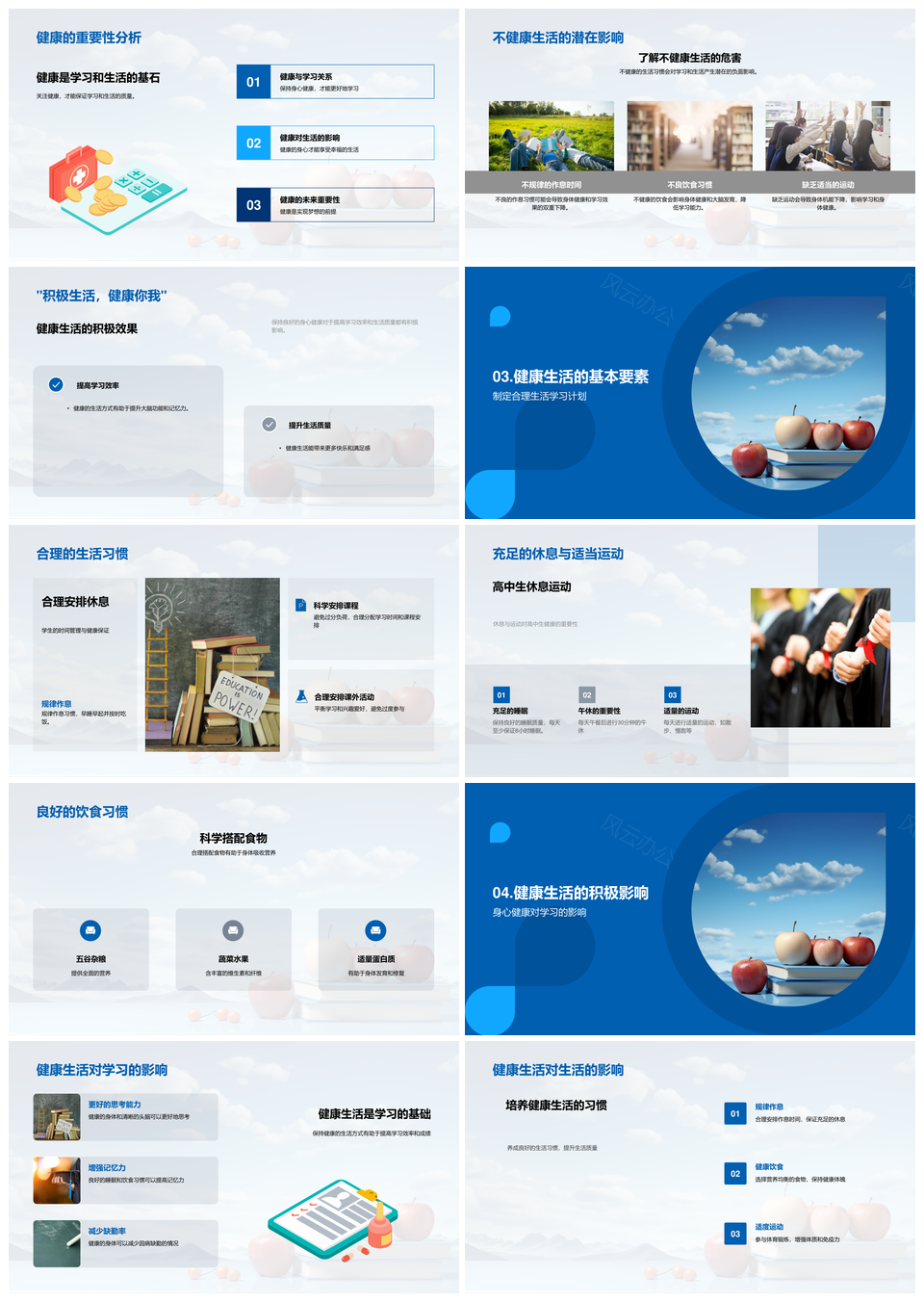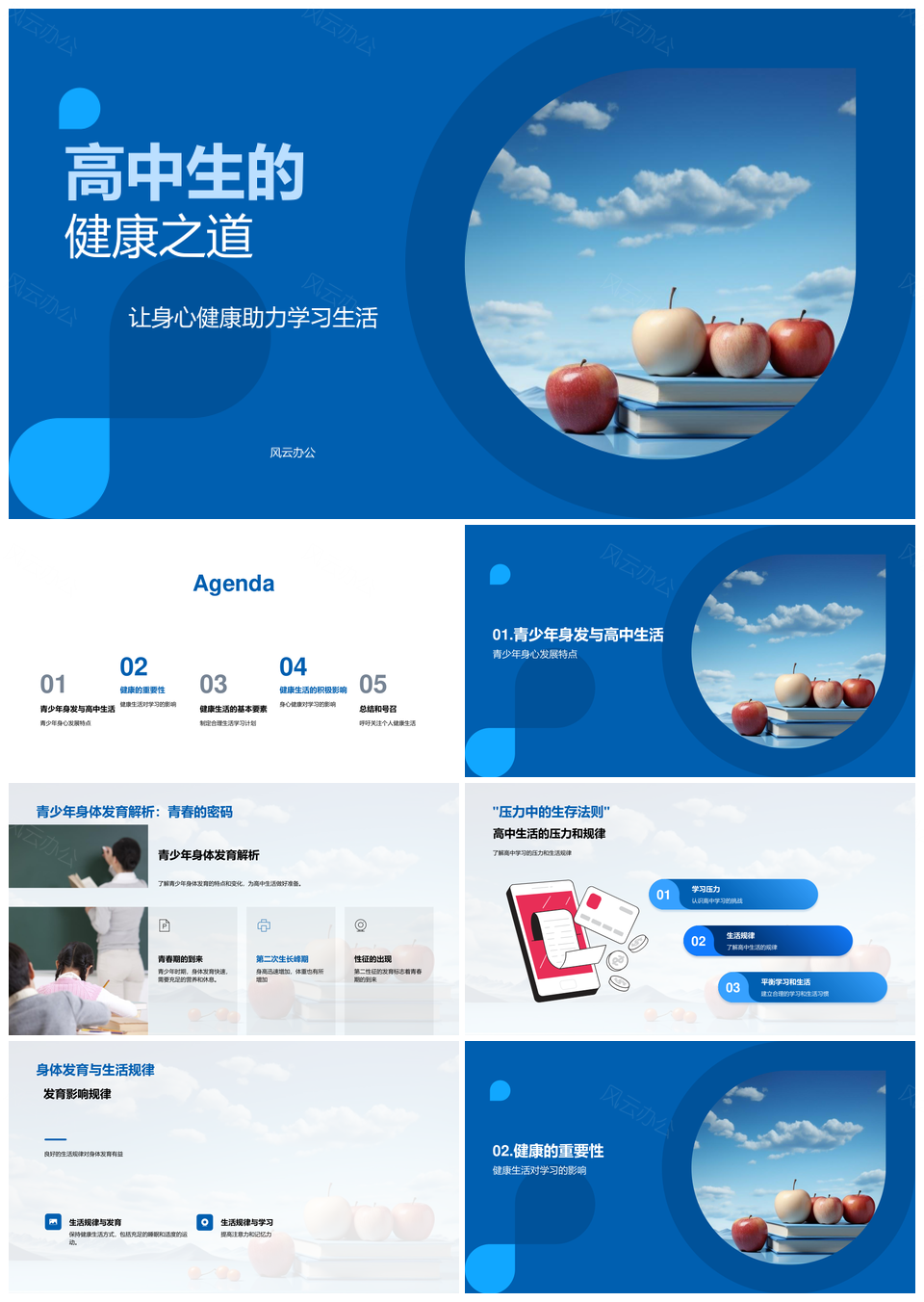 风云办公提供的高中生健康习惯提升学习效率PPT模板,下载格式为pptx,一共23页,作品中文字及图均可以修改和编辑,图片更改请在作品中右键图片并更换,文字修改请直接点击文字进行修改。