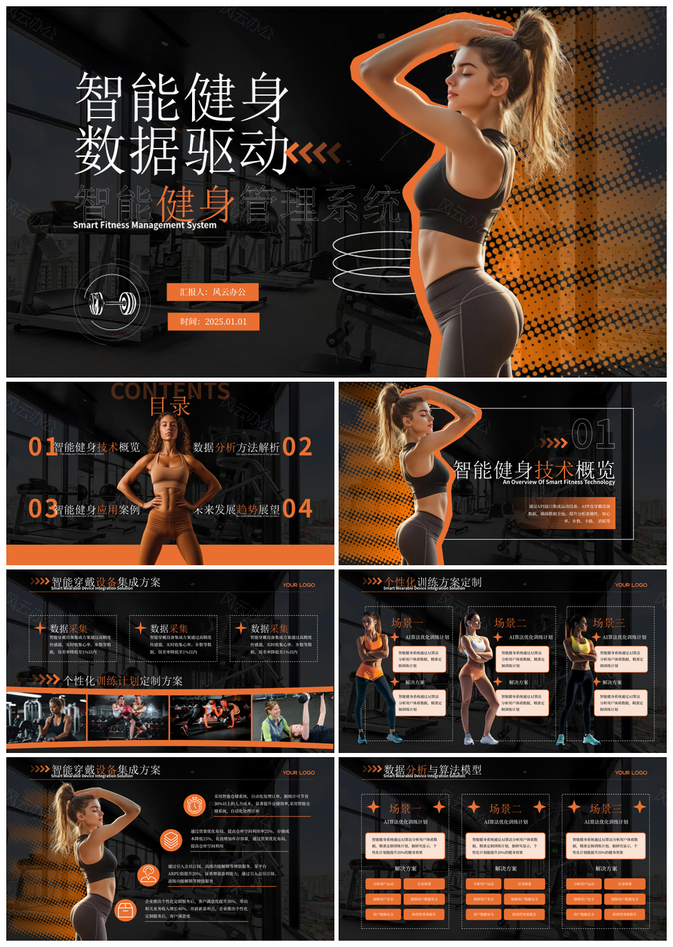 风云办公提供的2025黑橙欧美商务科技智能健身模板,下载格式为pptx,一共20页,作品中文字及图均可以修改和编辑,图片更改请在作品中右键图片并更换,文字修改请直接点击文字进行修改。