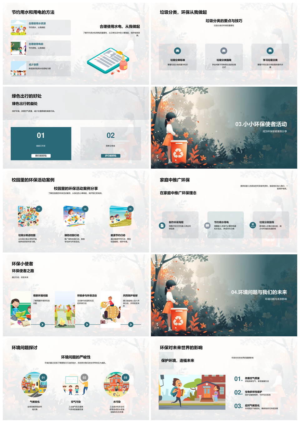 这是一张三年级环保节水节电分类出行教育行动策略PPT模板,包含环保、节水、节电、分类、出行、教育、行动策略等主题内容,也可用作三年级环保节水节电、环保节水节电分类、节水节电分类出行、节电分类出行教育、分类出行教育行动、出行教育行动策略、环保节水节电、节水节电分类、节电分类出行、分类出行教育、出行教育行动、教育行动策略、环保节水、节水节电、节电分类等PPT场景使用。 风云办公提供的三年级环保节水节电分类出行教育行动策略PPT模板,下载格式为pptx,一共23页,作品中文字及图均可以修改和编辑,图片更改请在作品中右键图片并更换,文字修改请直接点击文字进行修改。