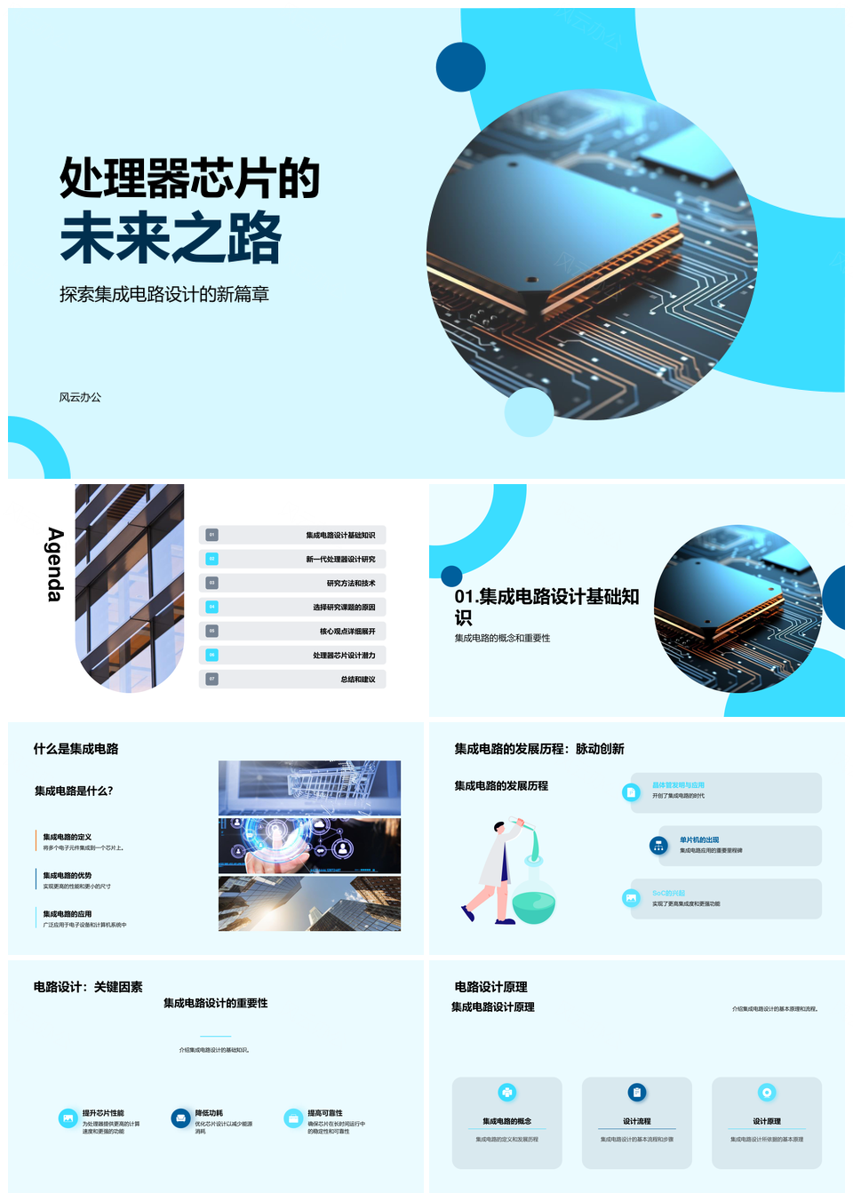 处理器芯片集成电路设计研究生学术答辩PPT模板推荐