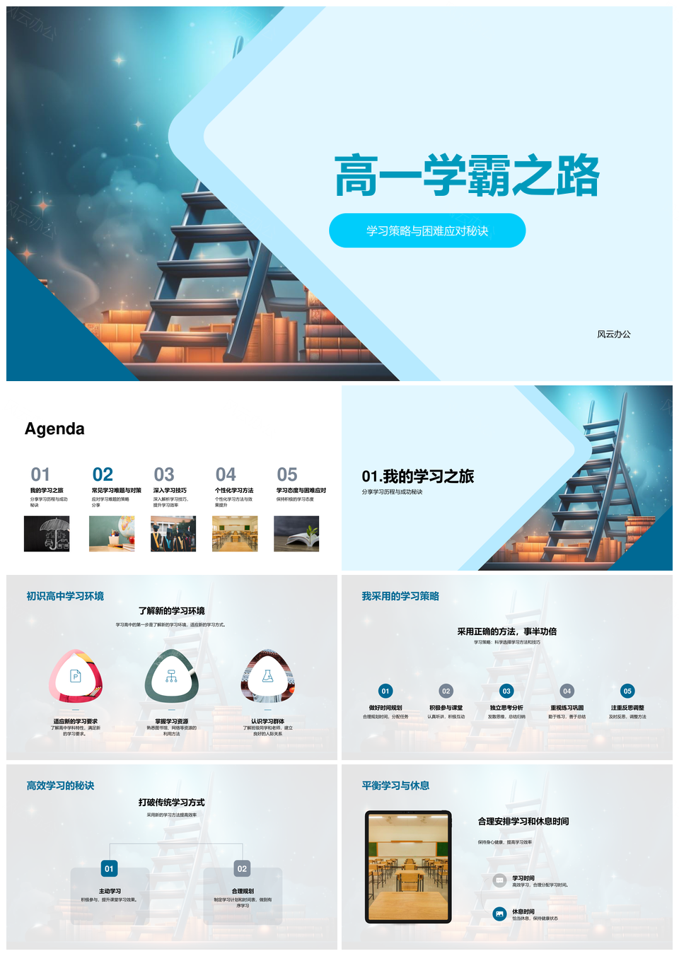 高一学霸高效学习克服困难提升记忆缓解焦虑时间管理PPT模板推荐